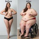 Image 1 was from this: Beautiful long-haired dark brown english woman with classic english rose beauty in a sunny royal garden. She is young, in her early twenties and so obese she is struggling to stand, sitting on a industrial mobility scooter. She wears red lipstick and intricate eyeliner. She wears a tiny bikini. She has a chubby face, but the rest of her is very ovese. Her arms are swollen with lymphodemia, covered in heavy cellulite and rolls. Her wrists are swollen and wide with a fat crease between her forearm and hand. Swollen fat hands with inflated large fingers. Her lower half is obese with huge swollen lymphodemic female legs covered in heavy cellulite and rolls. Swollen, wide ankles with a fat rolls across the divide bweteen the calf and foot. Swollen fat feet, with inflated toes.she has an incredibly obese shapeless blob body. She is near a wall, smirking, and has one swollen foot raised up on the scooter. young looking, stunning with beautiful makeup and hair. She is incredibly obese with fat spilling everywhere making her blobby. Shes does have a deep double chin hiding her neck. A prominant roll of fat cuts across her swollen forearms and inflated hands. Her swolen ankles are wide and round, with fat covering them as wide as her calves. she has expanded into a gigantically wide mountain of fat spill outward in all directions folding over. Her skin has large stretch marks and blemishes and cellulite all overm damaged by the gain. Her upper arm farm is rolling over her forearms, with multiple rolls and creases at the elbow. Her fupa is out and shaved. Her thighs are marks with cellulite; lard rolling over her knees which are hidden under fat. Her calves are round and large, and are touching one another. Her ankles are round, and split in two by a large fat roll. Her hands and feet are fat, with round plump fingers and toes with fat splaying out. Her feet are obscenely fat. Image 2 from this: Beautiful long-haired dark brown english woman with classic english rose beauty in a sunny royal garden. She is young, in her early twenties and so obese she is more of a blob. like an obese pinup photo. blowing a kiss. Her fat pushes everywhere and she looks like she's a melting blob. She wears red lipstick and intricate eyeliner. She wears a tiny bikini. She has a chubby face, but the rest of her is very ovese. Her arms are swollen with lymphodemia, covered in heavy cellulite and rolls. Her wrists are swollen and wide with a fat crease between her forearm and hand. Swollen fat hands with inflated large fingers. Her lower half is obese with huge swollen lymphodemic female legs covered in heavy cellulite and rolls. Swollen, wide ankles with a fat rolls across the divide bweteen the calf and foot. Swollen fat feet, with inflated toes.she has an incredibly obese shapeless blob body. She is smirking, and has one swollen foot raised up in the air. young looking, stunning with beautiful makeup and hair. She is incredibly obese with fat spilling everywhere making her blobby. Shes does have a deep double chin hiding her neck. A prominant roll of fat cuts across her swollen forearms and inflated hands. Her swolen ankles are wide and round, with fat covering them as wide as her calves. she has expanded into a gigantically wide mountain of fat spill outward in all directions folding over. Her skin has large stretch marks and blemishes and cellulite all overm damaged by the gain. Her upper arm farm is rolling over her forearms, with multiple rolls and creases at the elbow. Her fupa is out and shaved. Her thighs are marks with cellulite; lard rolling over her knees which are hidden under fat. Her calves are round and large, and are touching one another. Her ankles are round, and split in two by a large fat roll. Her hands and feet are fat, with round plump fingers and toes with fat splaying out. Her feet are obscenely fat. Image 3 from this: Beautiful obese long-haired dark brown obese american woman with classic english rose obese beauty in a nightclub. She is young, in her early twenties and so obese she is a blob, sitting on a wide bariatric bed posing like a pinup, eating a huge stick of butter. She wears red lipstick and intricate eyeliner and is nakd wearing nothig. She has a chubby face, but the rest of her is very ovese. Her arms are swollen with lymphodemia, covered in heavy cellulite and rolls. Her wrists are swollen and wide with a fat crease between her forearm and hand. Swollen fat hands with inflated large fingers. Her lower half is obese with huge swollen lymphodemic female legs covered in heavy cellulite and rolls. Swollen, wide ankles with a fat rolls across the divide bweteen the calf and foot. Swollen fat feet, with inflated toes.she has an incredibly obese shapeless blob body. She is smirking, and has one swollen foot raised up. young looking, stunning with beautiful makeup and hair. She is incredibly obese with fat spilling everywhere making her blobby. Shes does have a deep double chin hiding her neck. A prominant roll of fat cuts across her swollen forearms and inflated hands. Her swolen ankles are wide and round, with fat covering them as wide as her calves. she has expanded into a gigantically wide mountain of fat spill outward in all directions folding over. Her skin has large stretch marks and blemishes and cellulite all overm damaged by the gain. Her upper arm farm is rolling over her forearms, with multiple rolls and creases at the elbow. Her fupa is out and shaved. Her thighs are marks with cellulite; lard rolling over her knees which are hidden under fat. Her calves are round and large, and are touching one another. Her ankles are round, and split in two by a large fat roll. Her hands and feet are fat, with round plump fingers and toes with fat splaying out. Her feet are obscenely fat. Image 4 & 5 from this (PORTRAIT): Before and after of a beautiful long-haired dark brown english woman with classic english rose beauty in a magic room that makes thin people obese an