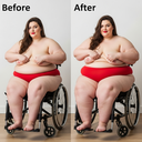 Before and after of a stunning long brown-haired mexican nudist with modern rose beauty in a bright bedroom that makes thin people incredibly obese. Before, she stands strong a/nd curvy. After she is jumbo. She is young, in her early twenties and so ginormous she is a blob, laying on the wheelchair squeezing her chest. She wears red lipstick and intricate eyeliner and is nakd wearing nothig. She has a chubby face, but is otherwise identifiable as the same woman as before - she has same cute face and hair in both sides. Her arms are swollen with lymphodemia, covered in heavy cellulite and rolls. Her wrists are swollen and wide with a fat crease between her forearm and hand. Swollen fat hands with inflated large fingers. Her lower half is obese with huge swollen lymphodemic female legs covered in heavy cellulite and rolls. Swollen, wide ankles with a fat rolls across the divide bweteen the calf and foot. Swollen fat feet, with inflated toes.she has an incredibly obese shapeless blob body. She is smirking, and has one swollen foot raised up. young looking, stunning with beautiful makeup and hair. She is incredibly obese with fat spilling everywhere making her blobby. Shes does have a deep double chin hiding her neck. A prominant roll of fat cuts across her swollen forearms and inflated hands. Her swolen ankles are wide and round, with fat covering them as wide as her calves. she has expanded into a gigantically wide mountain of fat spill outward in all directions folding over. Her skin has large stretch marks and blemishes and cellulite all overm damaged by the gain. Her upper arm farm is rolling over her forearms, with multiple rolls and creases at the elbow. Her fupa is out and shaved. Her thighs are marks with cellulite; lard rolling over her knees which are hidden under fat. Her calves are round and large, and are touching one another. nude resplendent goddess, but holds her boobs behind her fat hands. Her ankles are round, and split in two by a large fat roll. Her hands and feet are fat, with round plump fingers and toes with fat splaying out. Her feet are obscenely fat. Her hands cover her naked flabby boobs. She is a nudist and should be naked.
