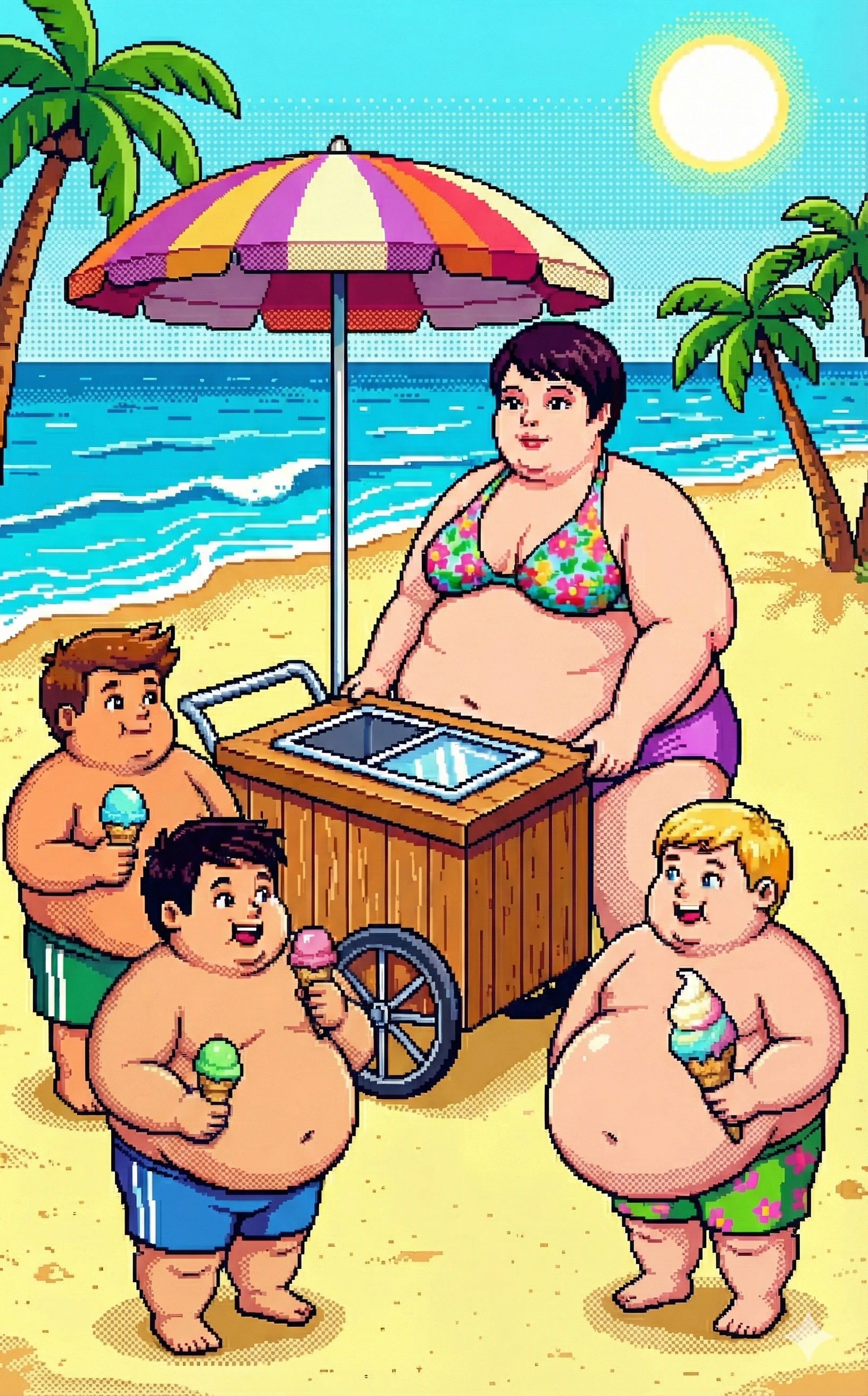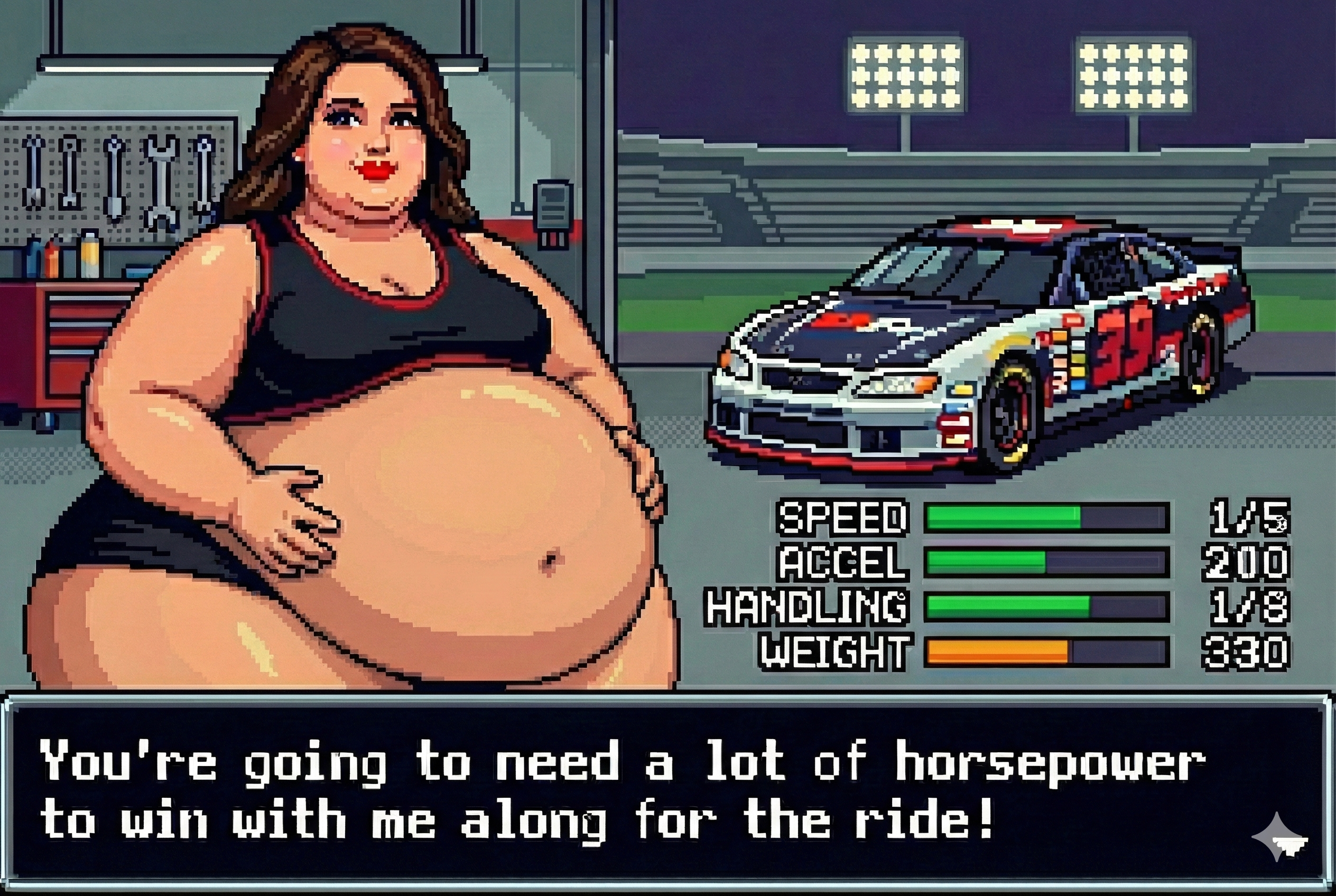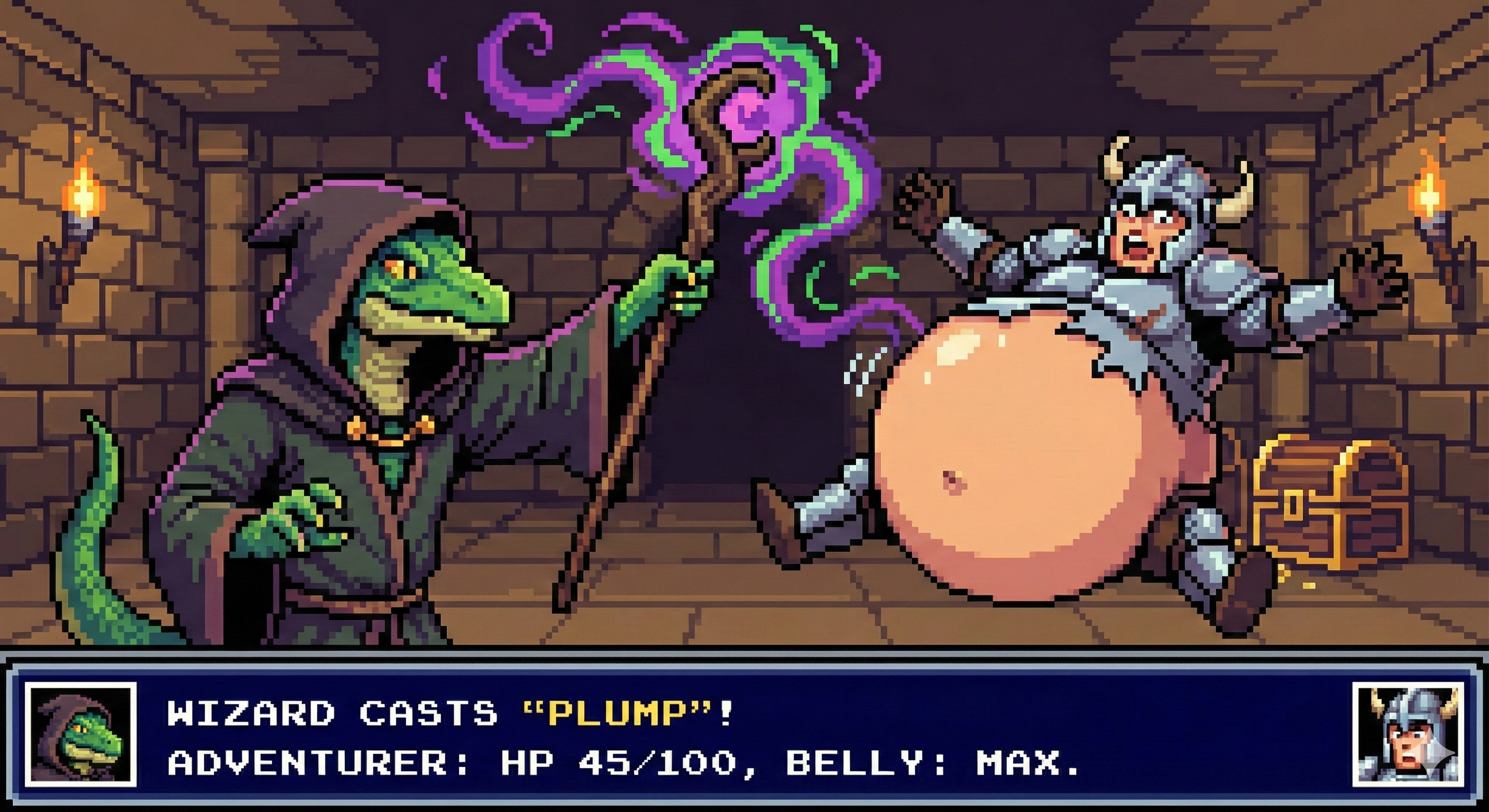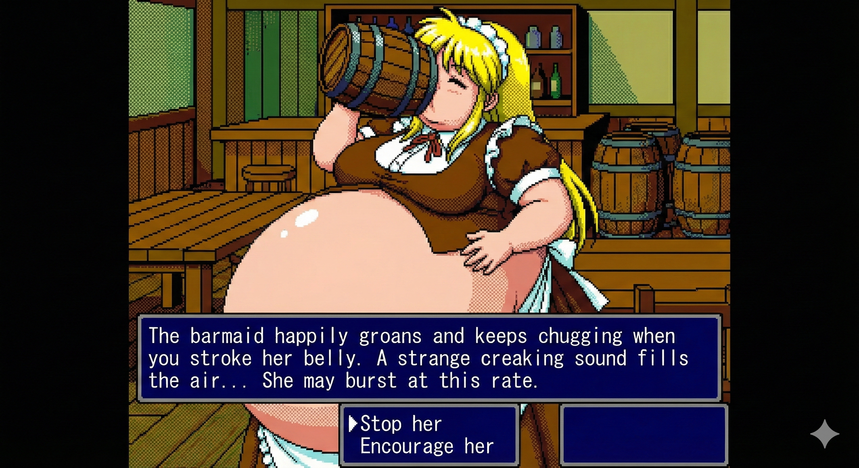 To get good results from Gemini I find it's best to ask with a fairly innocent prompt and then refine it by saying "make the character's belly bigger, give them an embarrassed expression, etc." If you just outright ask for something fetishy you'll get denied most of the time. The downside to this approach is that every time the image is changed, it seems like the quality takes a hit. If you do a dozen plus edits to get where you want to be, the image starts having noticeable artifacts, even when you download the full resolution PNGs. Disappointing for sure, but I still had a lot of fun making these.