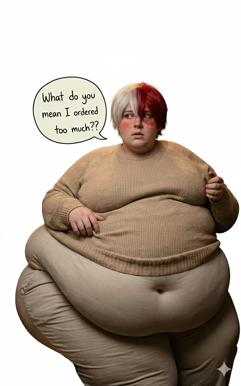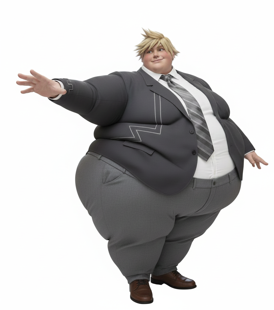 Here's my OC Will as a slob! I made this one using the PixAI "Fat Obese Girls IL" LoRA and a yaoi LoRA. He sure looks flustered. 💘