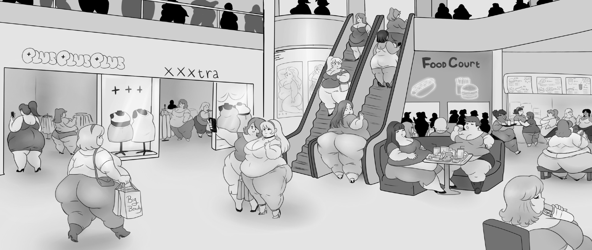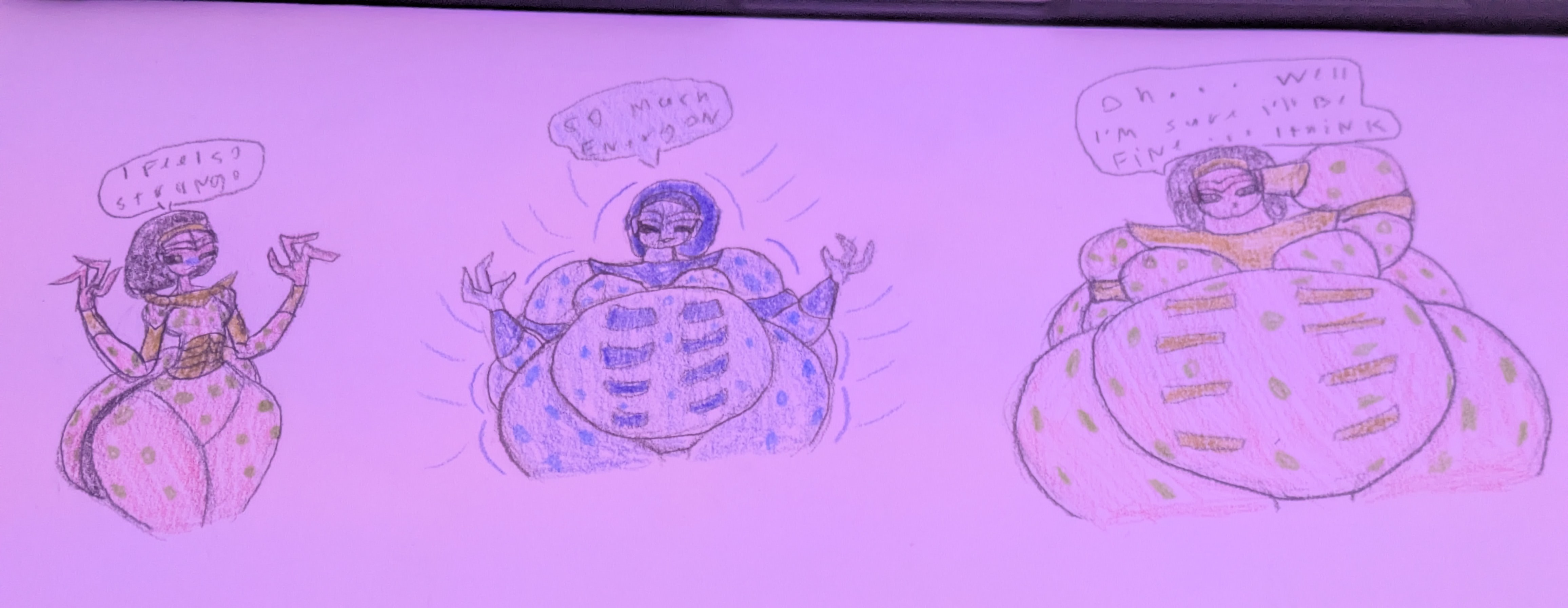Drawing dresses stretched across comically obese bodies is hard lmao