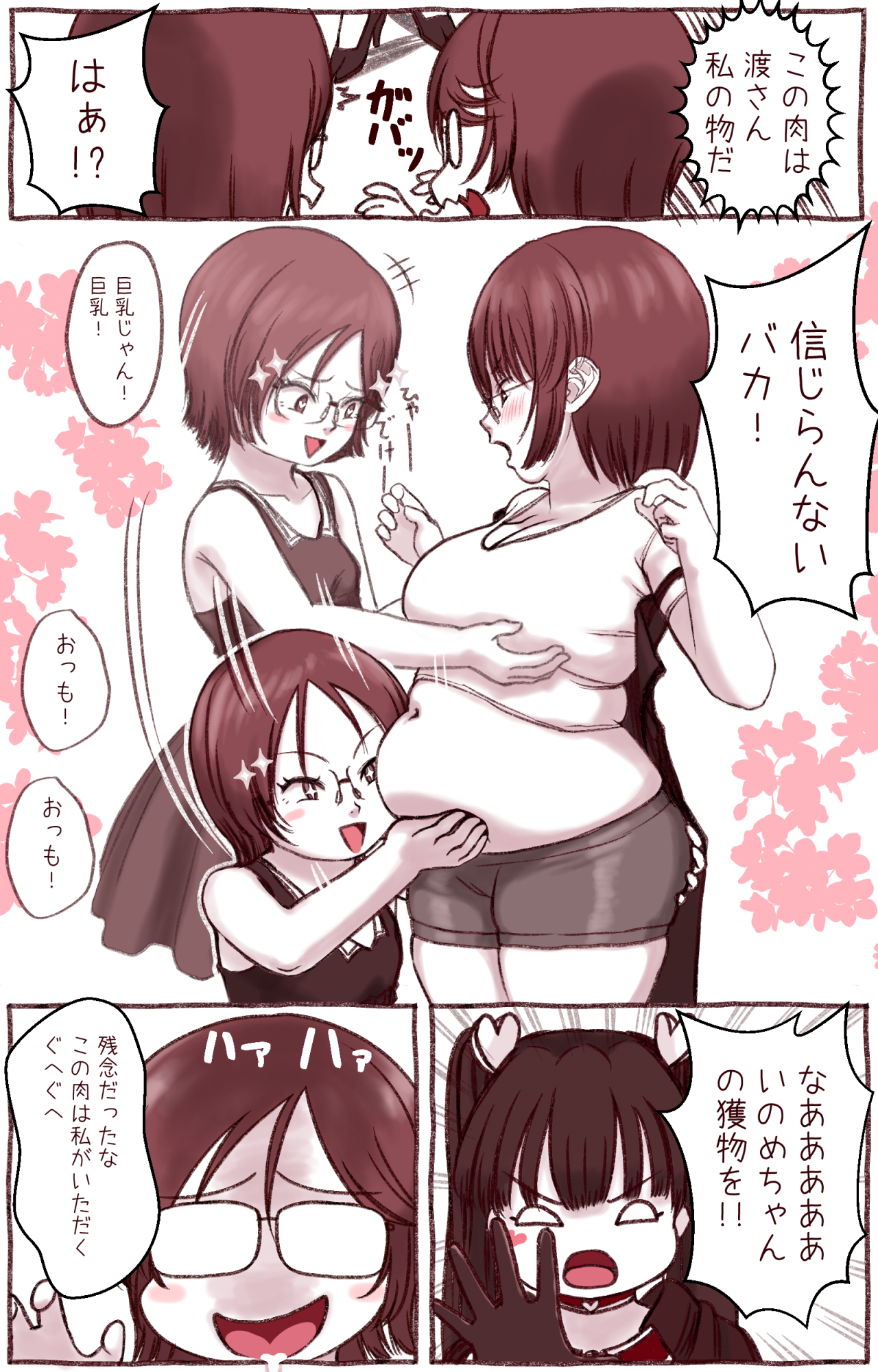 >>104079 >She gorged herself beyond reason during just half of winter and now she's finally showing regret. Nah, she's into having her belly touched by the blonde catgirl, who is into her weight gain.
