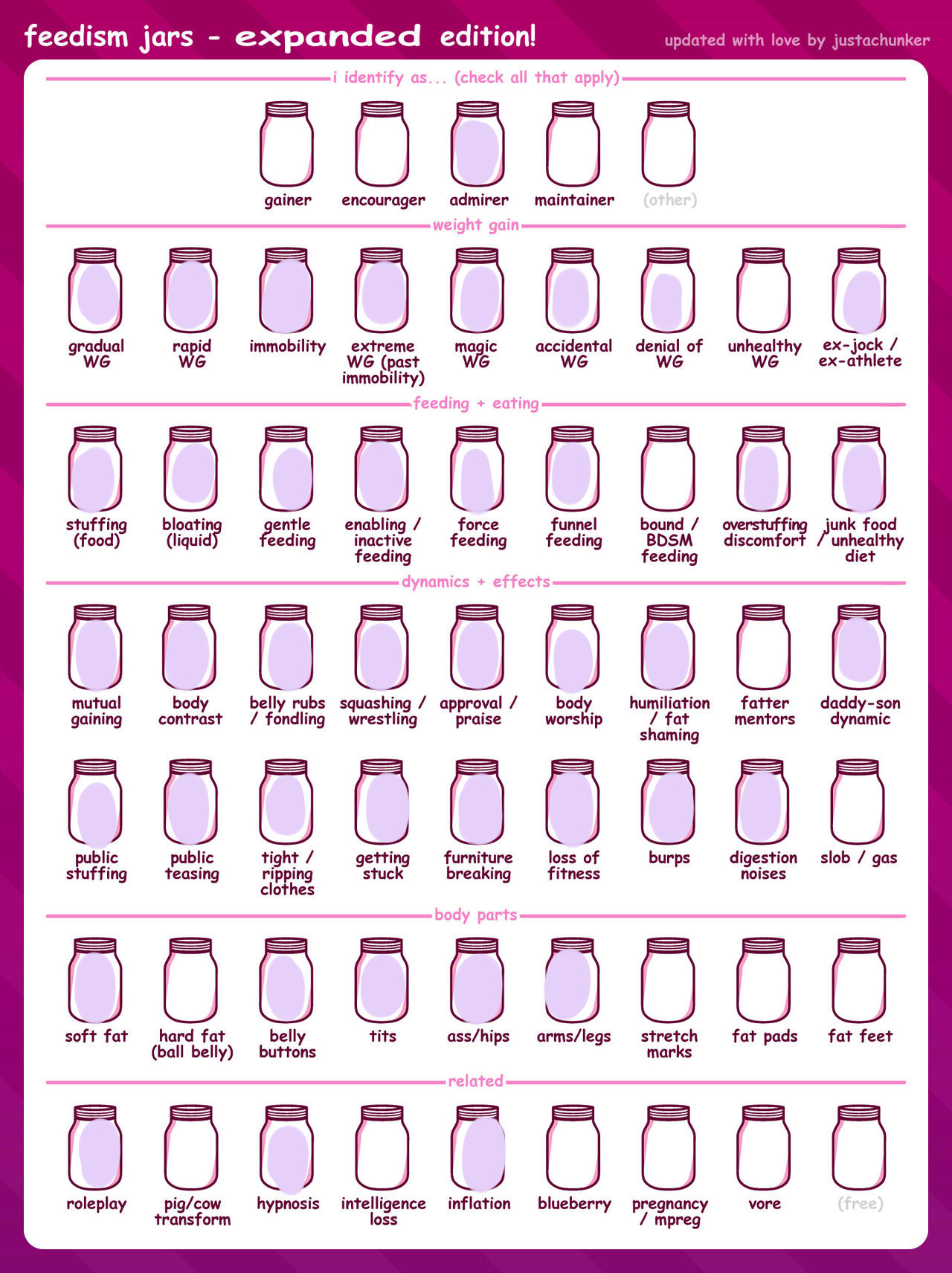 Hey all you kinksters! I hope all of you are having a fantastic day. I've got a hell of a kink list and some interesting ideas. So strap in! Pregnancy, Hyperpreg,Hard pregnancy, for example clothes not fitting, discomfort, etc CNC (consensual noncon, will explain), Bdsm, Hyper sizes, Preg fat, Bbw, Lactation, Inflation, Unbirth, Vore, Weight gain, Force feeding Feedism, weight gain denial (being in denial of gained weight) Belly noises (sloshing, gurgling, grumbling etc) Belly movement, Degradation , Humiliation , Birth denial, Clothes bursting, Cuminflation, Multiple wombs, Permapreg Rapid preg,, Sloshing breasts (due to lactation), Tight clothing, Belly fucking Tit fucking, Belly stuffing I think that's most everything probably not but eh My current idea revolves around a girl getting fat (fatter?) to hide the fact she's knocked up! If anything up there interests you dm (dis, boyothebeautiful ) me! Don't be afraid to ask about kinks that aren't listed aswell I'm fairly open. Thanks!.