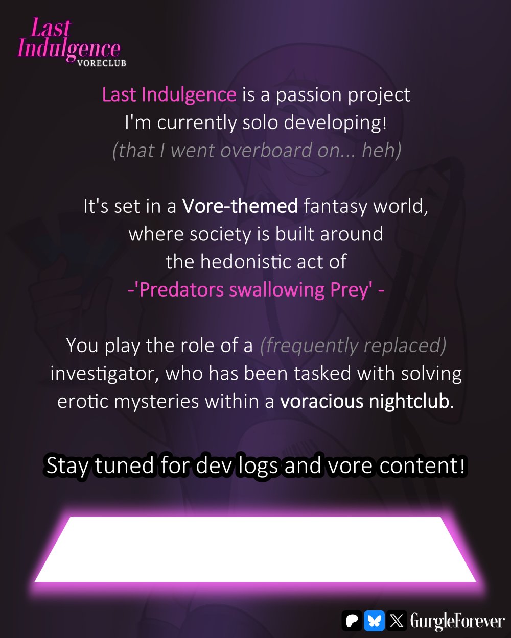 Has anybody got any builds or things from Gurgle Forever? Crazy looking vore game with big ladies that’s being worked on. Could really be something.