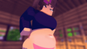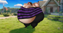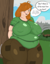 It was about Alex asking an alley for many buckets of water, but since he can only carry one, the alley in the second panel comes back full of water, but gives it to Alex, He brings her more buckets and gives them to her to drink, inflating her too much.