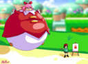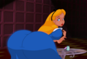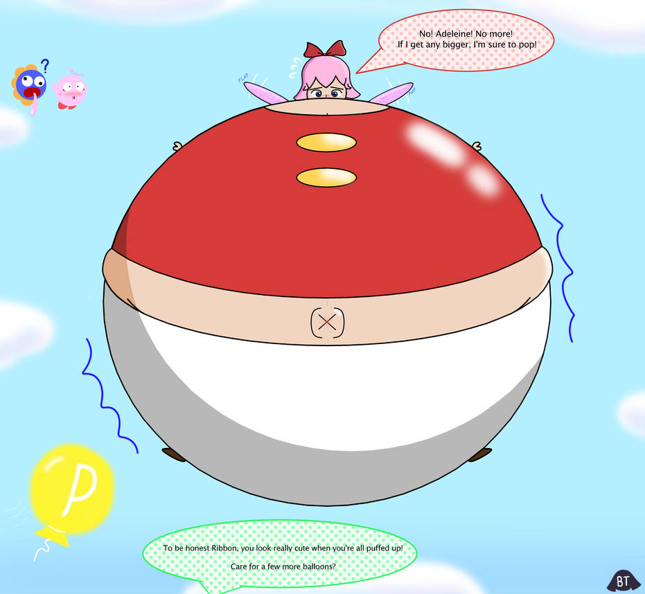 >her bashful cheeks puff up as her overalls and t-shirt start stretching to accommodate her growth
