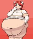 >>104802 They find a cure for Maria's disease but a side effect is increased appetite/weight gain. Maria's doesn't seem to mind though as she's excited about having "boobs" now, even if they are only due to her weight gain. (She gropes the slightly saggy boobies with a look of amazement). Naked or tits out of her dress would be nice.