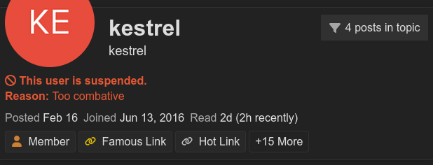 Yeah, THAT was why I remember your bad attitude in particular. Will say, you probably should have been banned for that BACK THEN, but it is unreasonable to hold it against you 2 years down the line and be the defining reason to ban you. Man's not a cop or law enforcement, I think it is absurd to sit on such for multiple years.