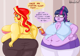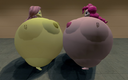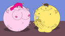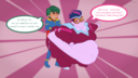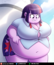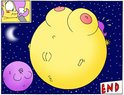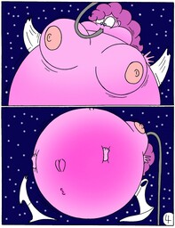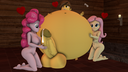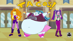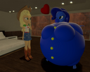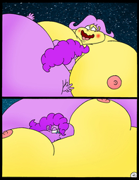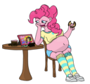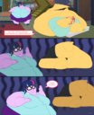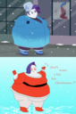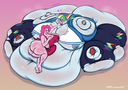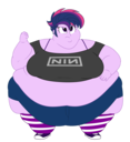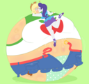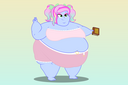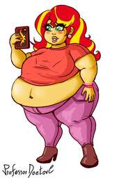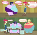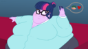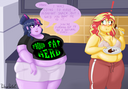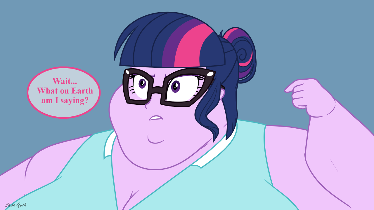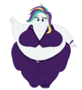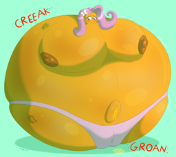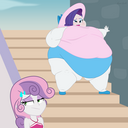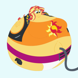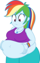 Looking down again at that cumbersome brace, Rainbow groaned as she fell back on her bed. She cringed slightly as she felt her flabby gut wobble beneath her skin-tight tee, dreading what’s to come of her growing waistline.
