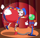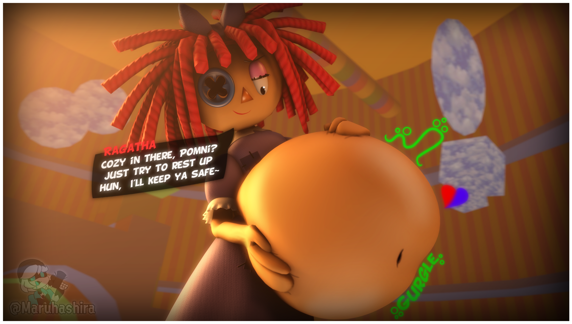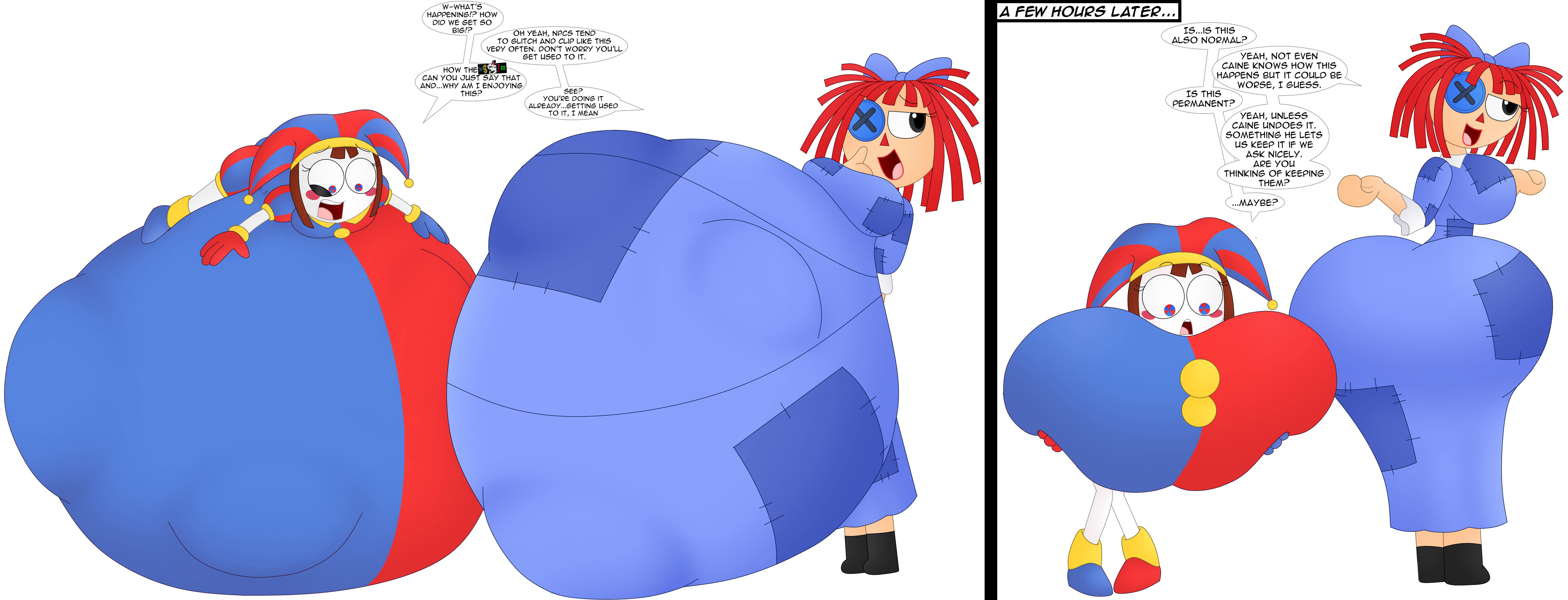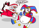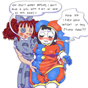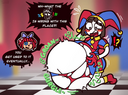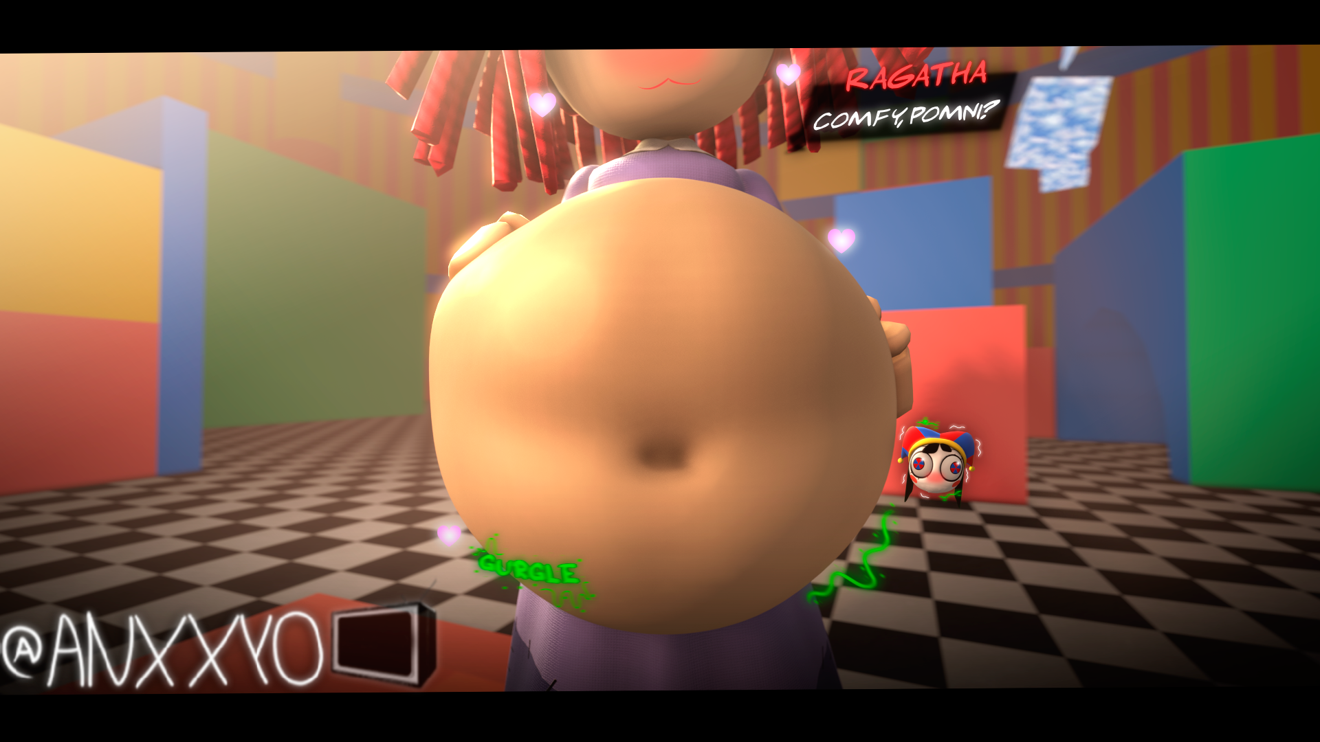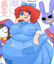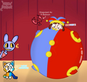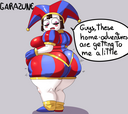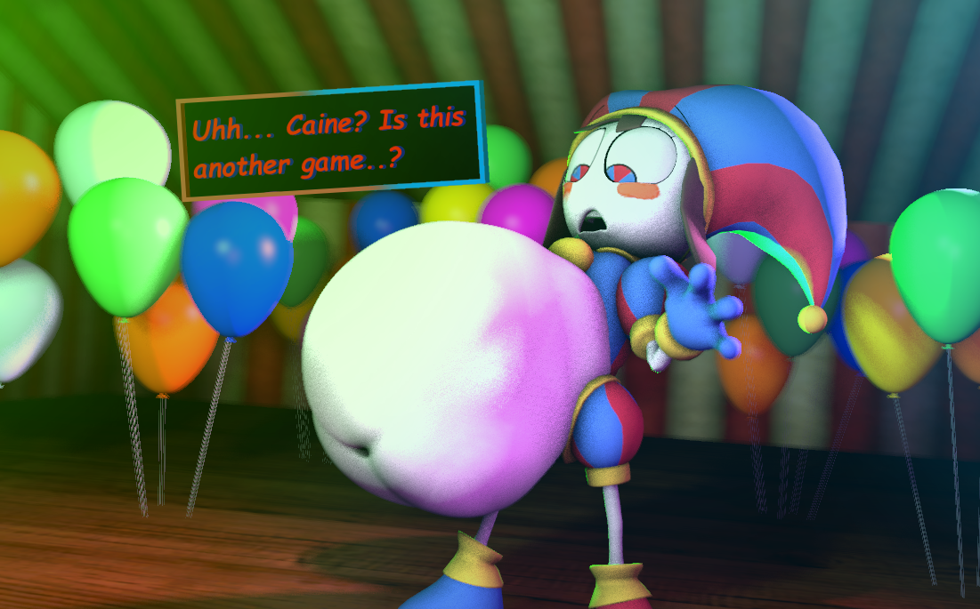 Jax seems to be enjoying what is happening, with Ragatha and Zooble swelling all over the chocolate puddle below and where they fell in. Inside, ragatha is wondering what's going on amidst the laughter of Jax, who seems to be enjoying the moment as the doll swells more and more. Zooble, on the other hand, simply disregards everything that's going on wondering various things, with Gangle watching her in a bit of surprise.