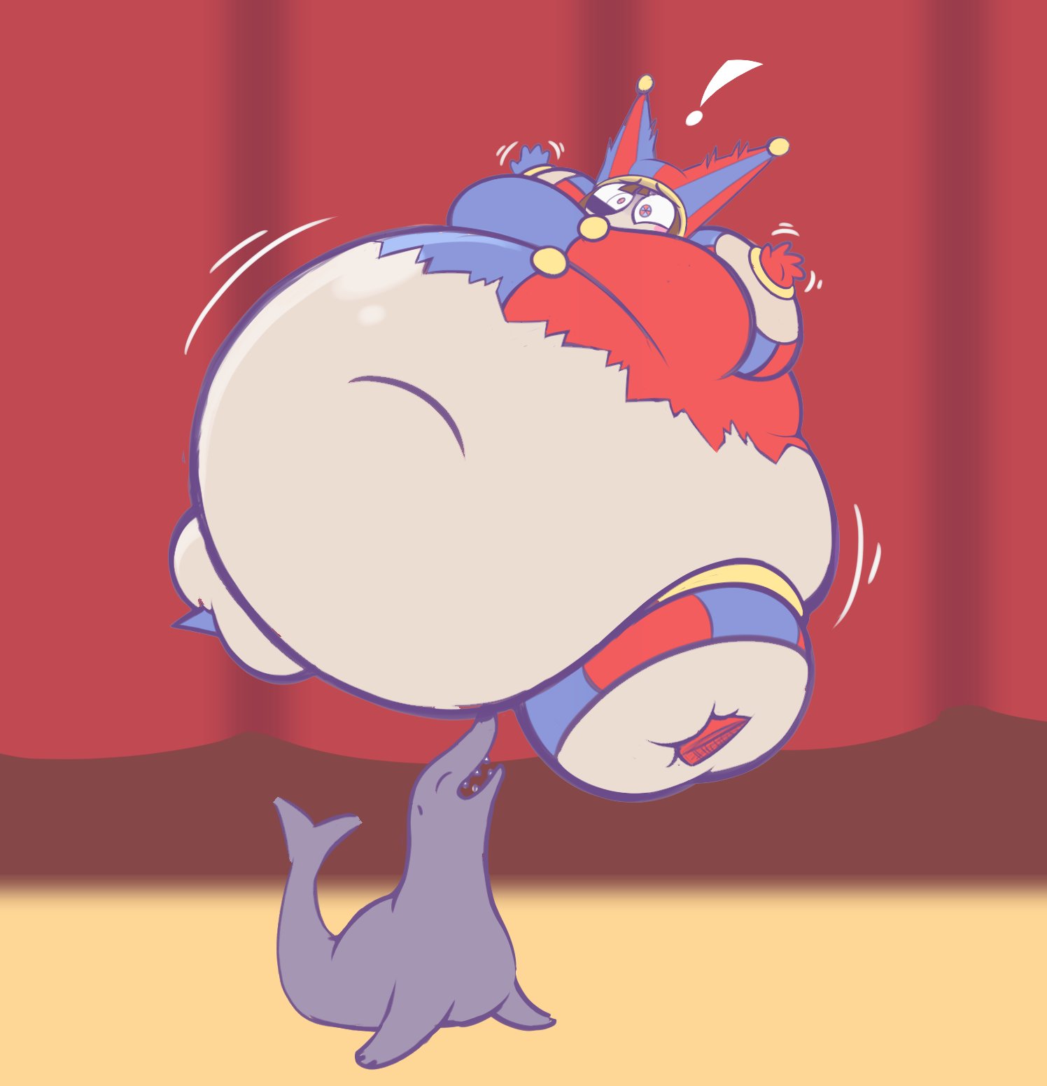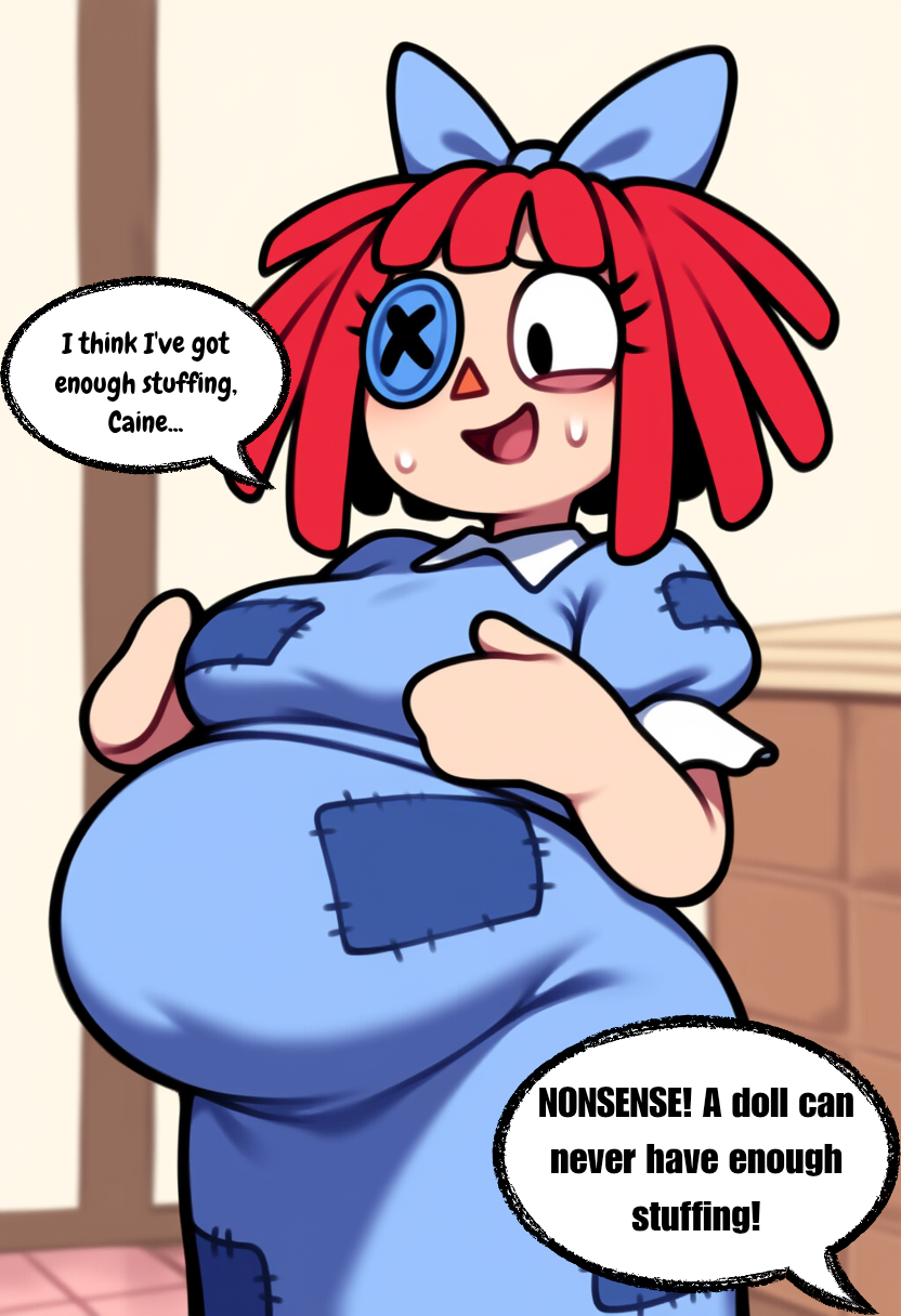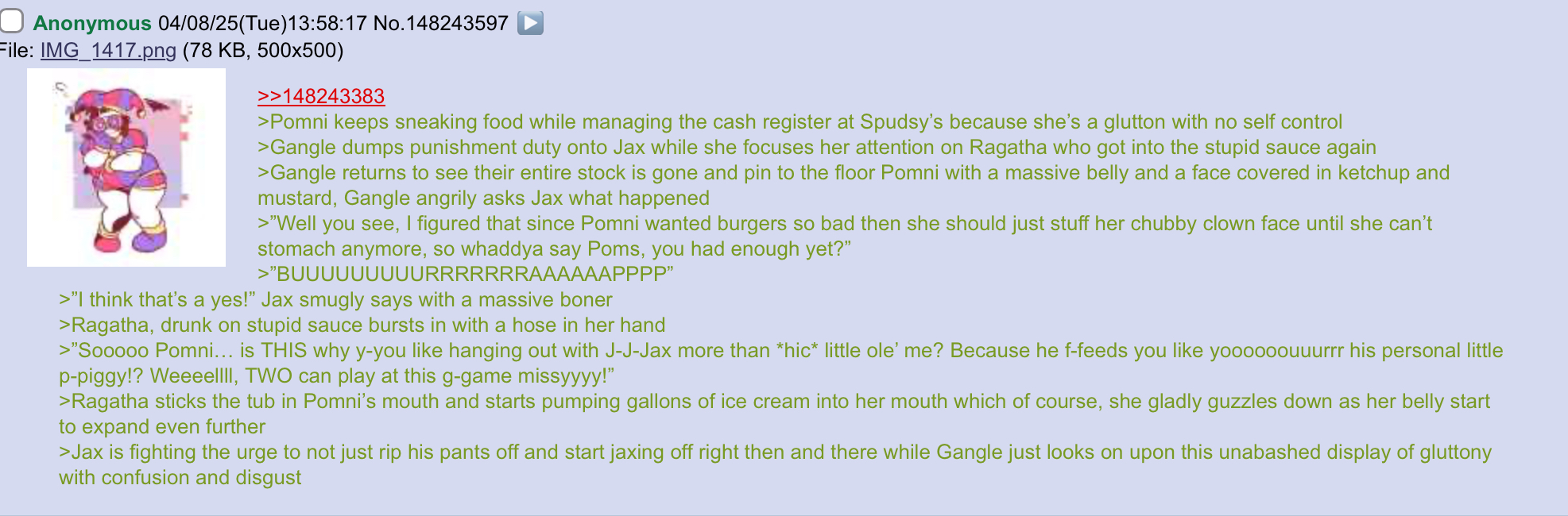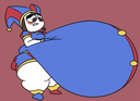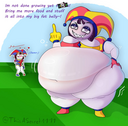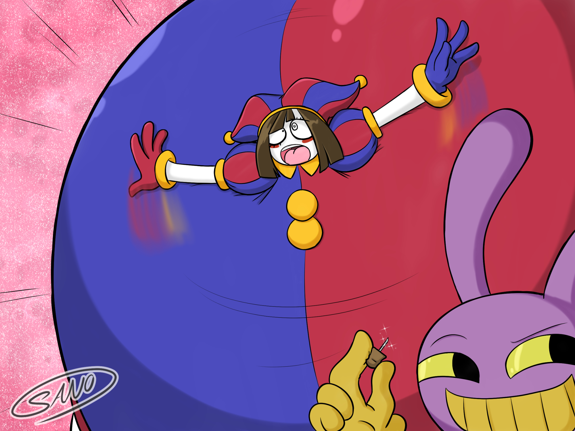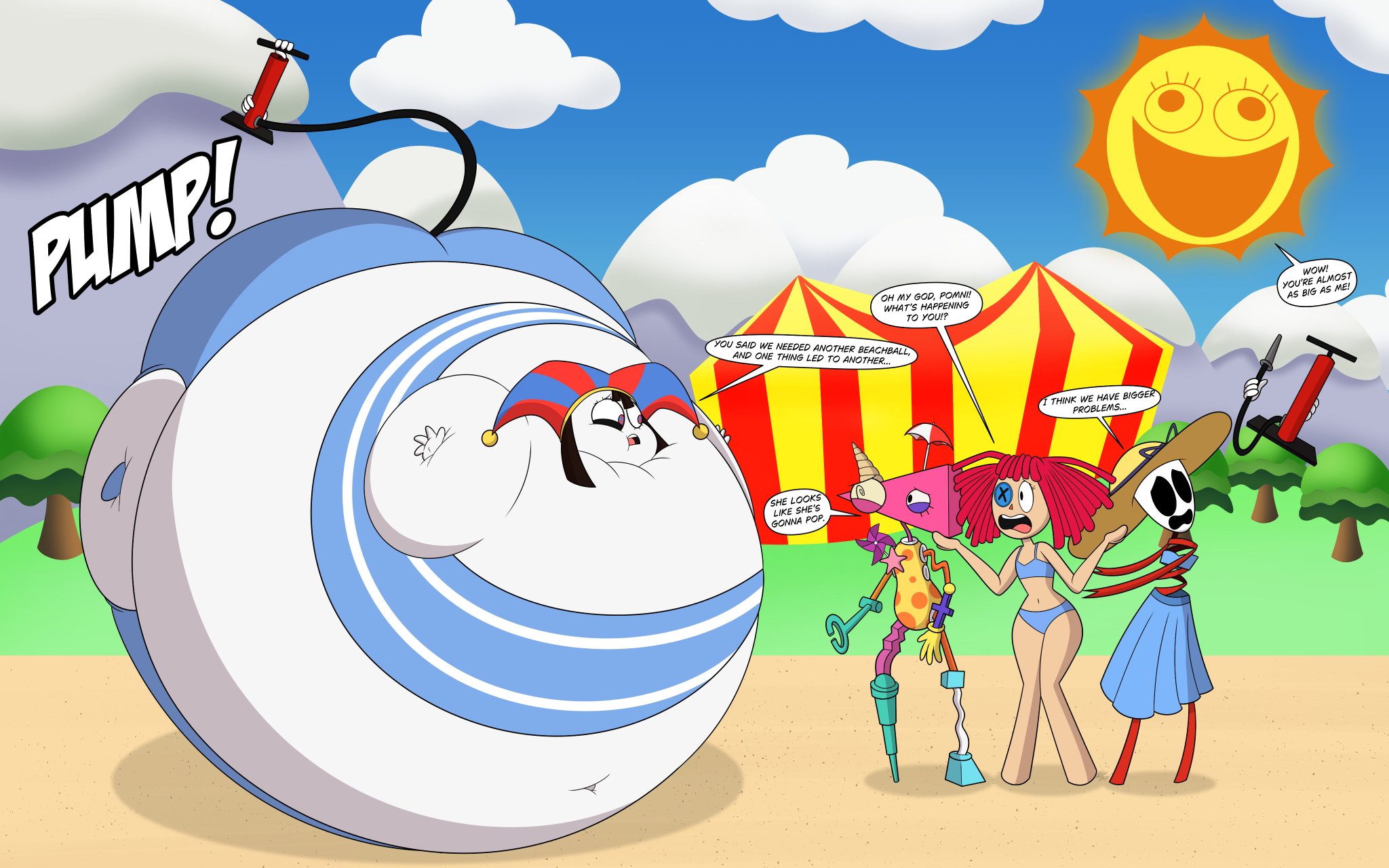 Jax seems to be enjoying what is happening, with Ragatha and Zooble swelling all over the chocolate puddle below and where they fell in. Inside, ragatha is wondering what's going on amidst the laughter of Jax, who seems to be enjoying the moment as the doll swells more and more. Zooble, on the other hand, simply disregards everything that's going on wondering various things, with Gangle watching her in a bit of surprise.