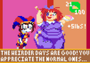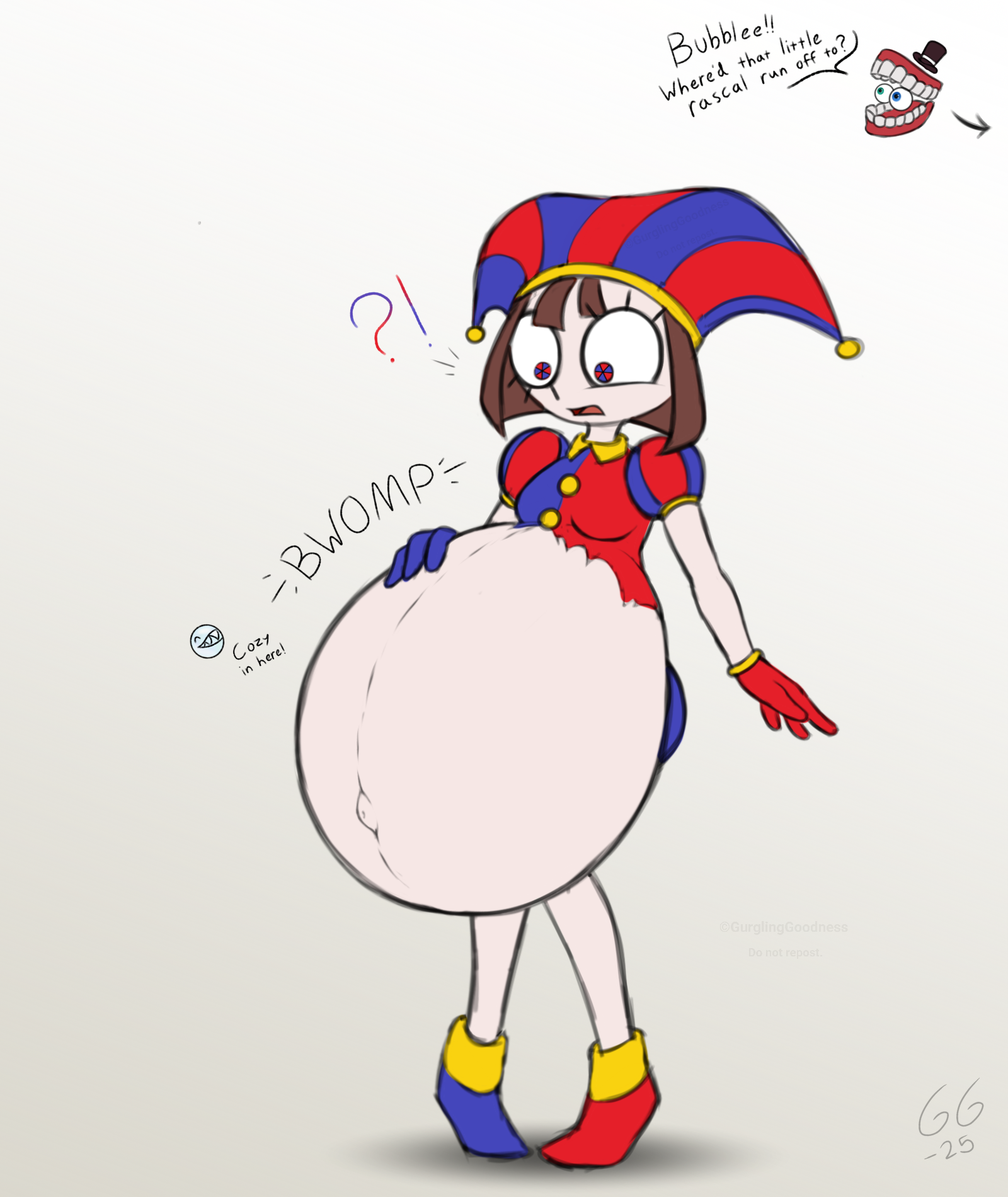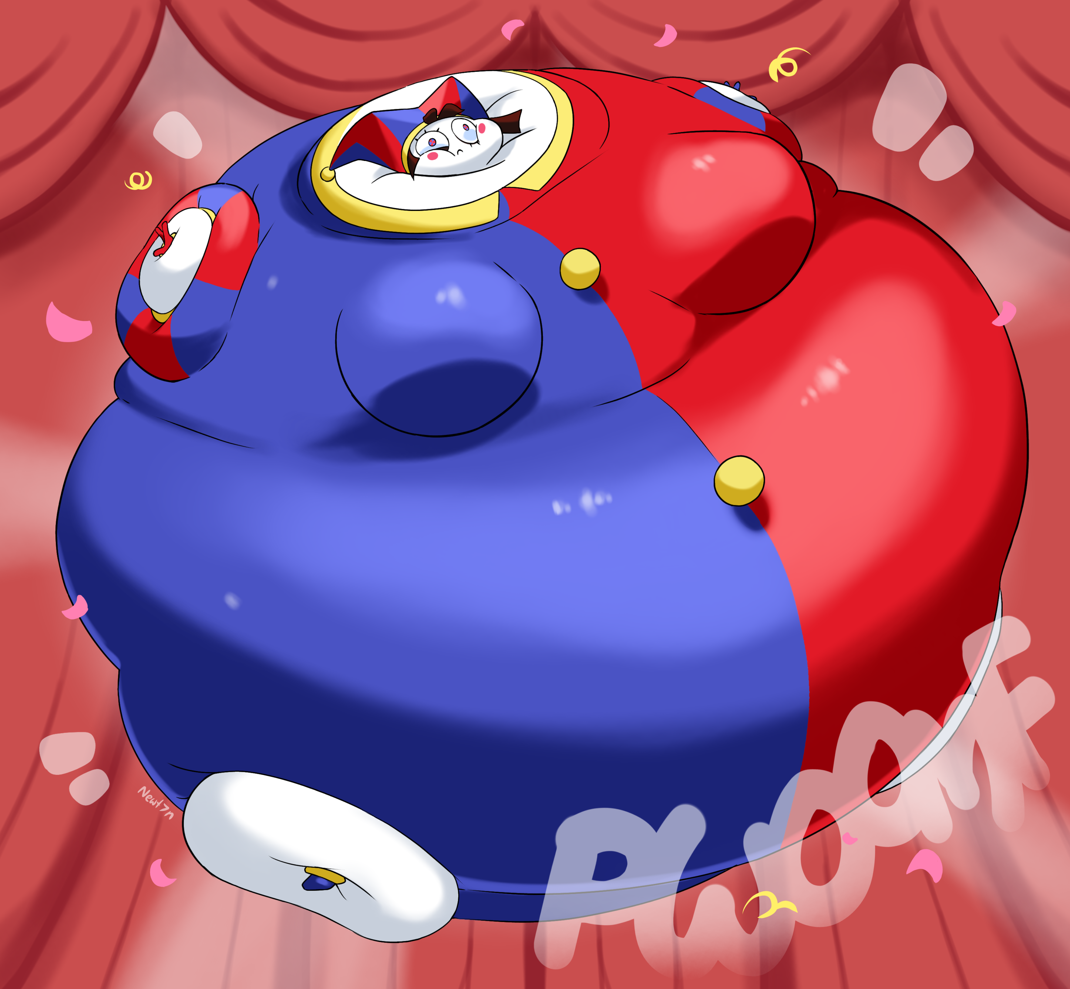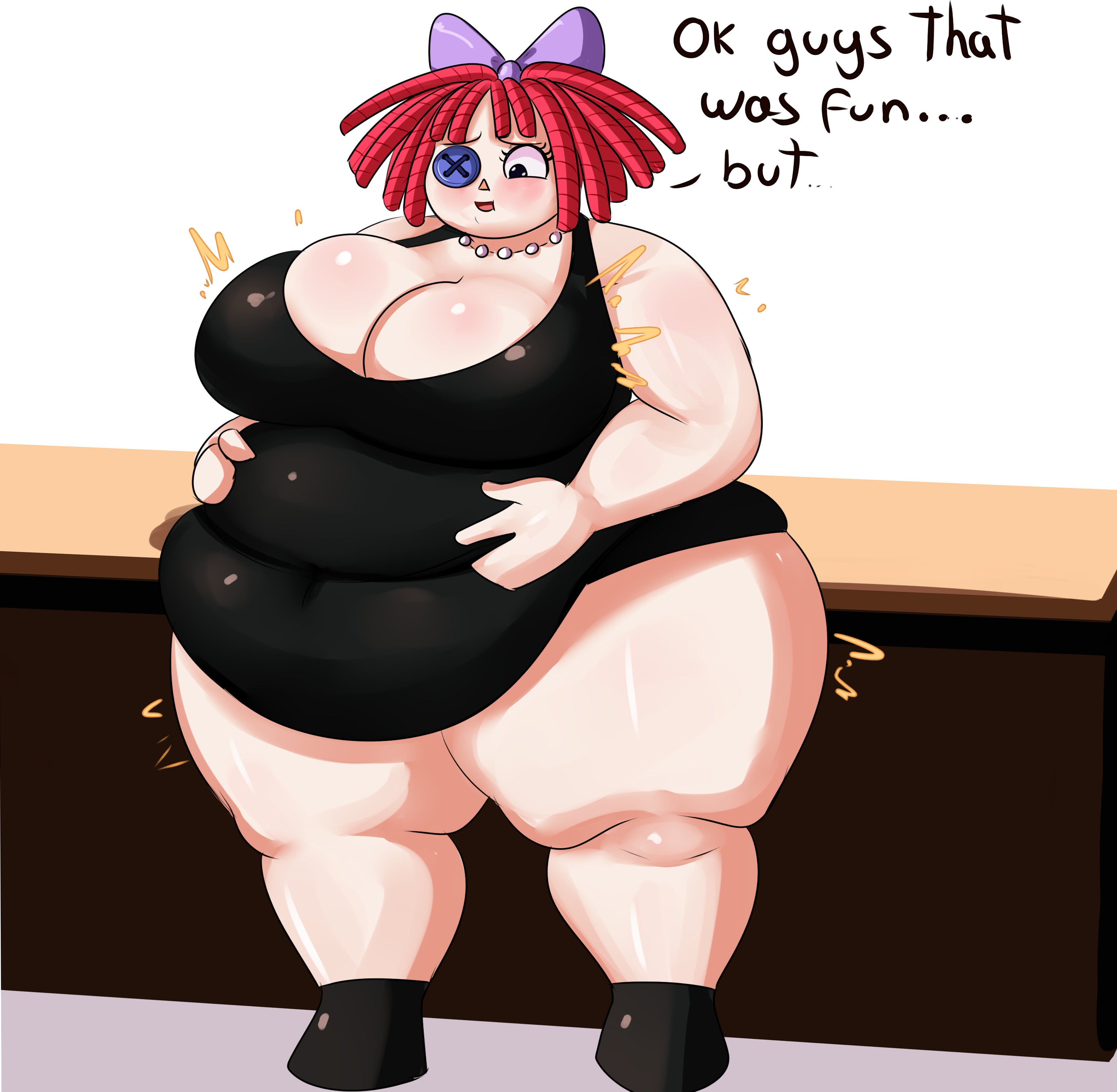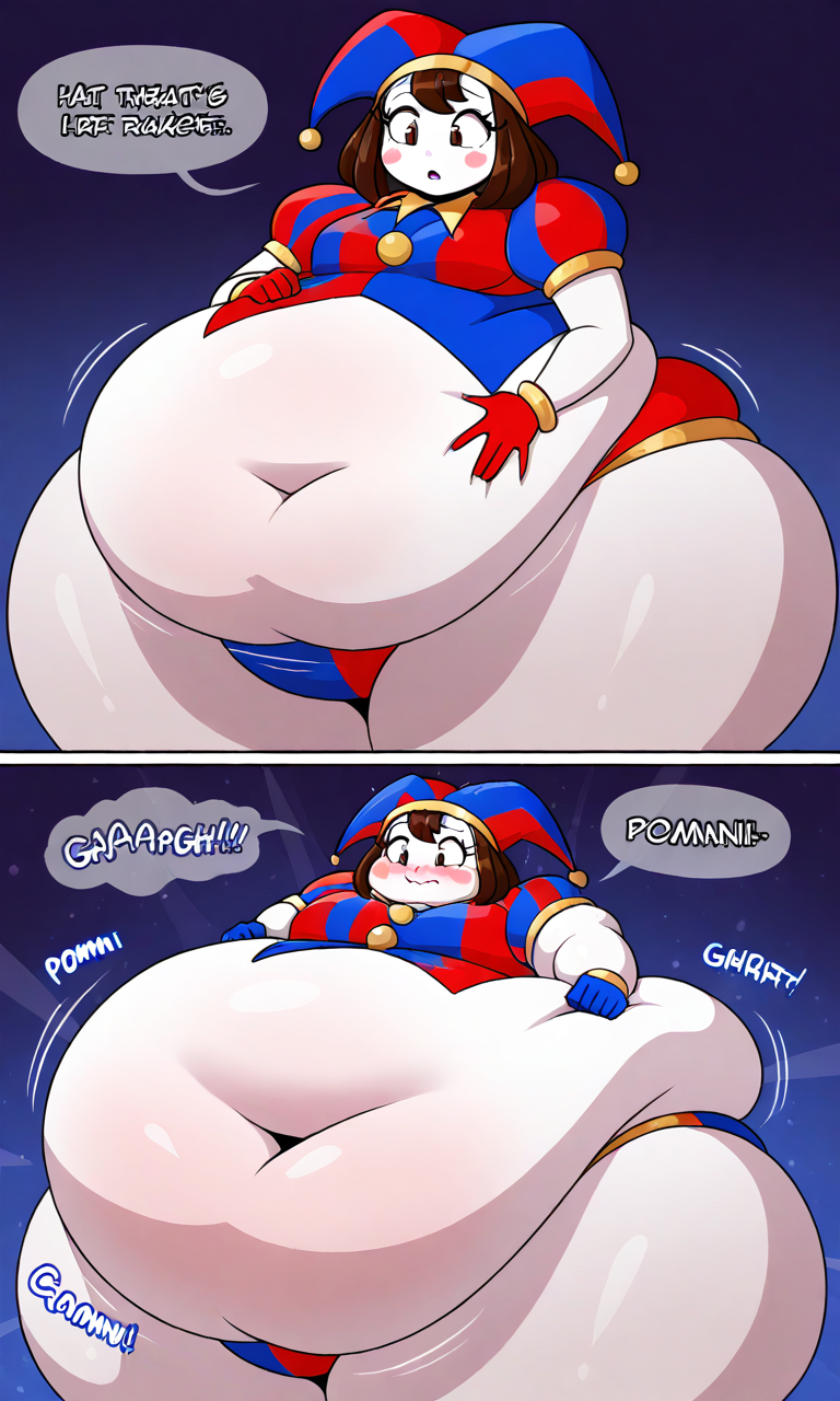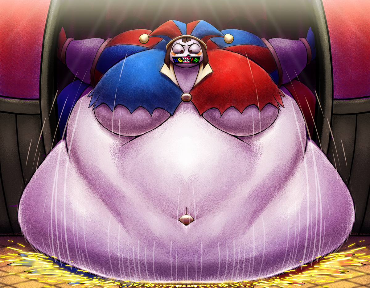 Jax seems to be enjoying what is happening, with Ragatha and Zooble swelling all over the chocolate puddle below and where they fell in. Inside, ragatha is wondering what's going on amidst the laughter of Jax, who seems to be enjoying the moment as the doll swells more and more. Zooble, on the other hand, simply disregards everything that's going on wondering various things, with Gangle watching her in a bit of surprise.