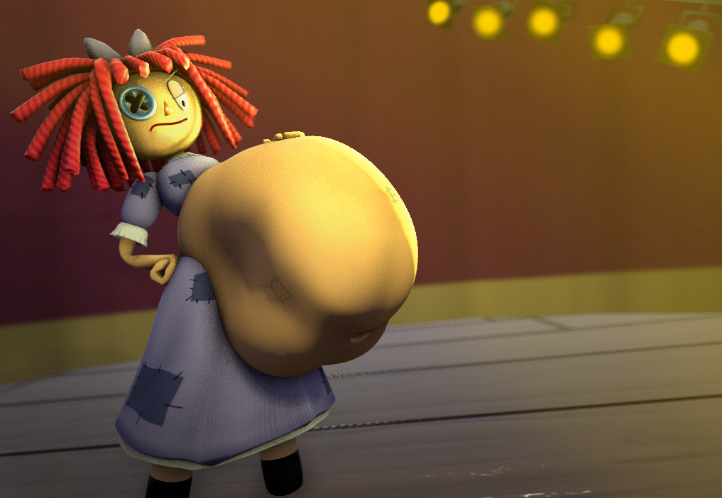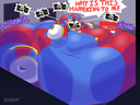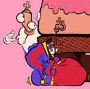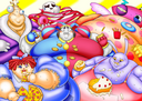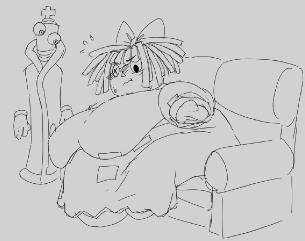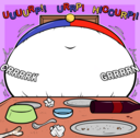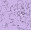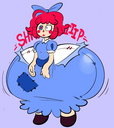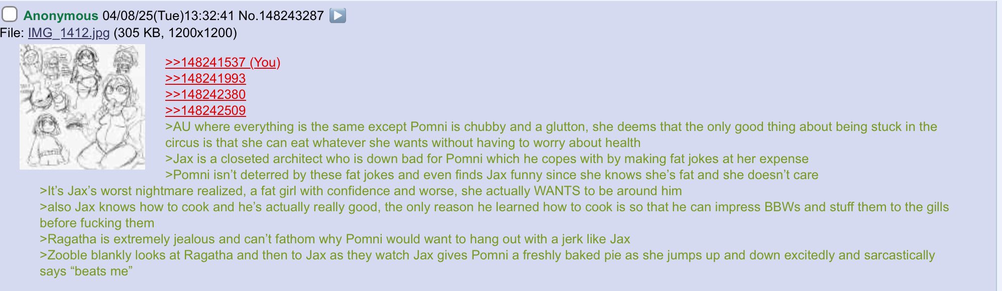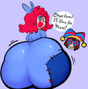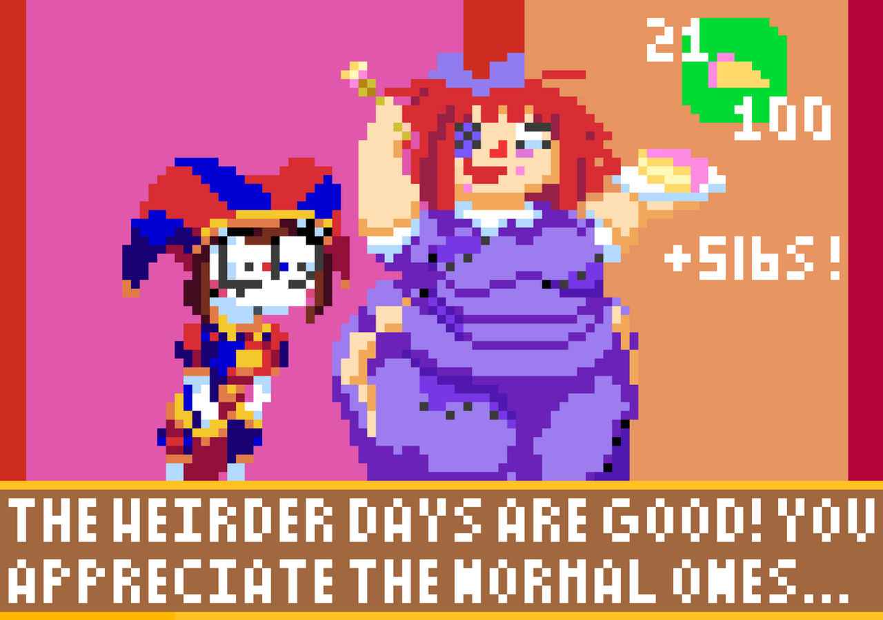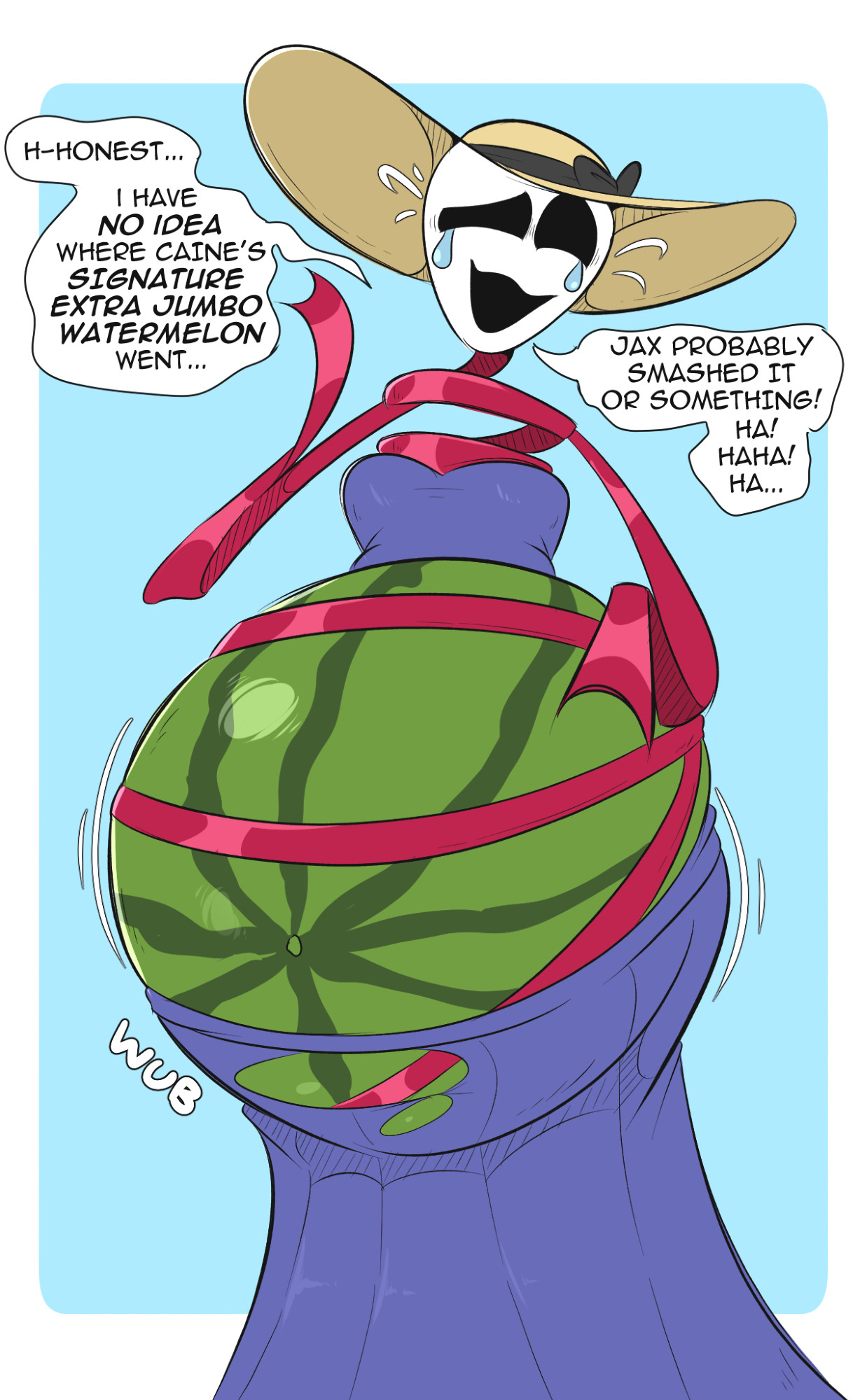Jax seems to be enjoying what is happening, with Ragatha and Zooble swelling all over the chocolate puddle below and where they fell in. Inside, ragatha is wondering what's going on amidst the laughter of Jax, who seems to be enjoying the moment as the doll swells more and more. Zooble, on the other hand, simply disregards everything that's going on wondering various things, with Gangle watching her in a bit of surprise.