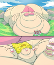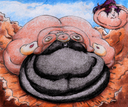 So like, is there any blob drawn that's bigger than these two in Saxxon's "Cake Party"?