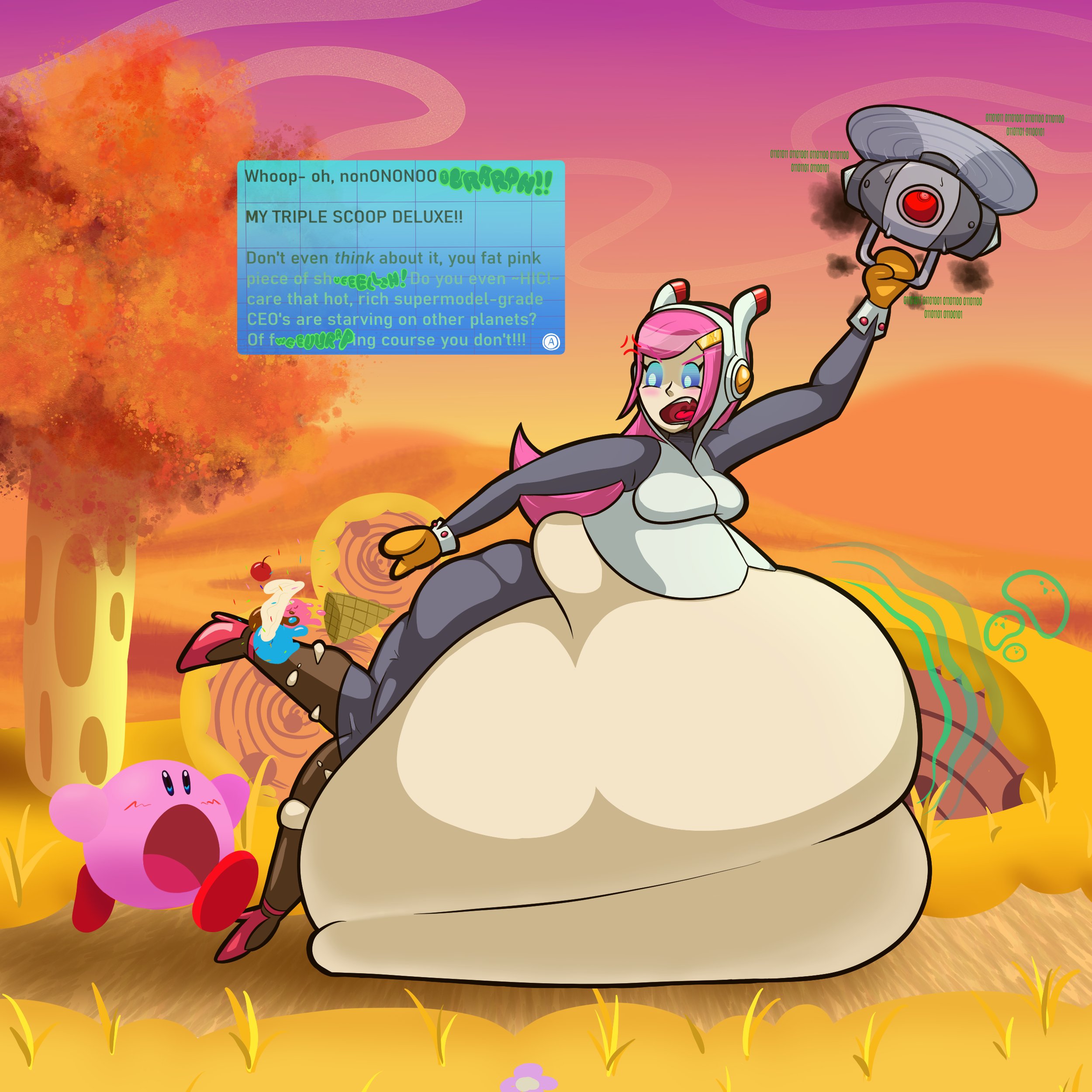 Also, when it comes to potential characters, I greatly prefer females: Susie, Sectonia/Joronia, the Mage Sisters, Adeleine, Ribbon, the Fairy Queen, Clawroline, etc. I'm a lot pickier with male characters: I'm not into most of them, but my exceptions are Taranza and Elfilin (and Fecto Elfilis by association) since I think they're the right kind of cute. And while I'm not necessarily into him, I could potentially see myself kinking up Magolor if someone has a good enough idea for him. Maybe.