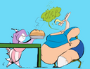 This happened when I commented on her recent post of Fionna’s blueberry expansion, based on the ‘05 Violet expansion scene. She mentioned that she is going to draw the juicing and the aftermath. Because she mentioned the aftermath, I’m hoping that she can make her look like this, instead of being slim and flexible like in the original movie. Considering how stretched out her skin was since she had expanded.