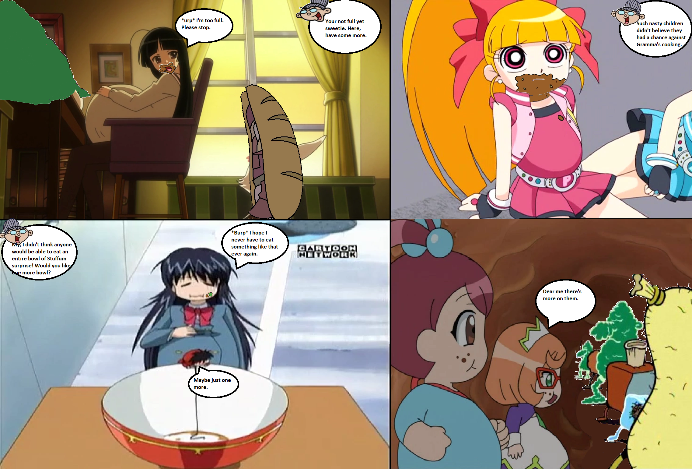 >>87196 I'm going to expand upon this question I asked earlier in the thread. So, among the many weight gain/inflation scenes we've seen in TV shows and movies, which one do you want to see with The Powerpuff Girls? Personally, I would love to see Bubbles absorb gallons upon gallons of root beer and become a giant fat blob, kinda like spongebob in the slumber party episode.