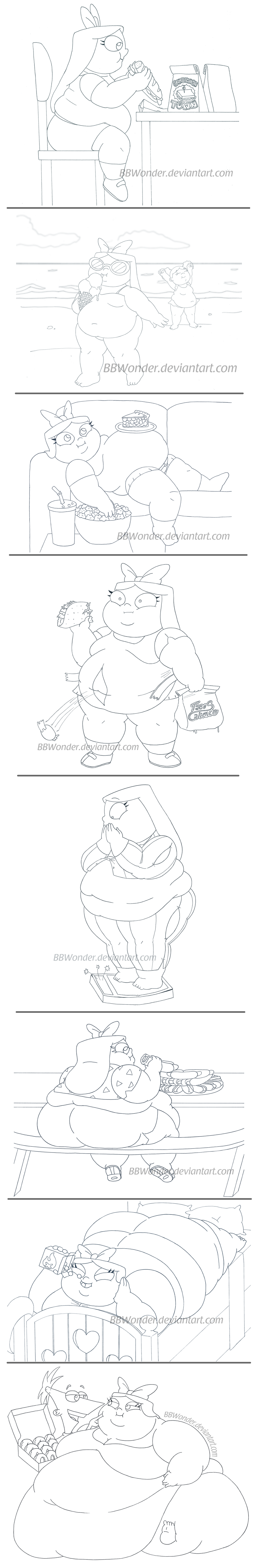 This is from a last thread. I interested to commission an artist to do a WG sequence loosely based on this episode from 6teen, which Caitlin gets fat from eating too much chocolate. I wonder how many sequences should have? I'm open for details suggestions, and how many sequences should have? As well ideas and scenarios? I’m thinking commission a artist for this sequence.