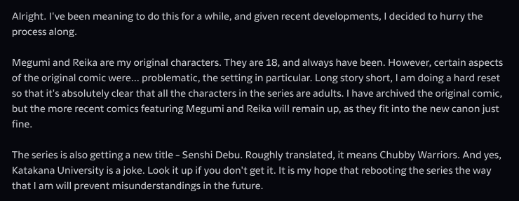 No furry. Anthro content goes on >>>/bbfurries/ Monstergirls are fine, but no muzzles or non-human faces. If you're not sure, post it there instead of here. No inflation Inflation goes on >>>/inf/ This can be tricky, since sometimes fat looks inflated and vice-versa, but please try to sort to the best of your ability. No slob/icky Alternative or extreme female content goes on >>>/bbwalt/ This includes slob (brap-posting), vore, muscle, etc. No male Go here >>>/bhm/ If an artist has a dedicated thread and they draw things besides just fat girls, posting their other art is okay but please use spoilers for those kinds of posts. If you are confused by a link, it's probably base64. Base64 encoding is no longer necessary.