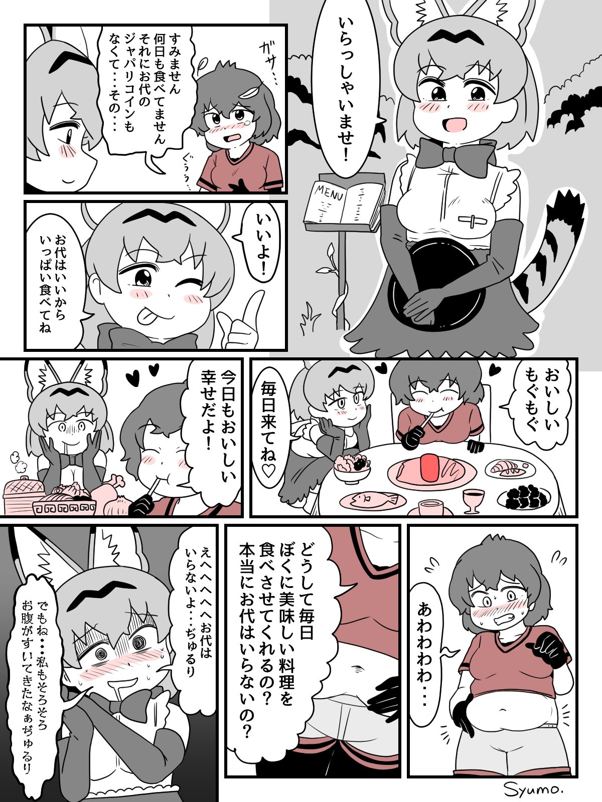 This comic honestly feels like a meme or the artist making fun of weight gain comics with the cartoonish expressions and proportions
