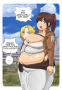 Here's a big rant about the first comic "Fat Chance". Viki get's put on a diet by her Mom on page 1 and it seems obvious that she's going to rebel against her, I wonder if there's going to be an addictive fast food place or maybe a special burger challenge in this comic. On page 10 Eda suggests a challenge for the Mega Burgers launch, Mega steals this idea and says it on the podcast on page 23, an insanely long time for a set up, I wonder how much longer this will be dragged out. Mega reveals how addicting the food is, which was previously set up, she says people who eat at her restaurant "never stop chewing even when their jaws hurt and they never stop consuming." We get 4 panels of the red head customer in the first 23 pages, who is used as an example of a customer who is "losing control", and we get a handful of belly shots of Cassie eating, at this point it seems like the ground work is there for the stuffing and gaining to happen right? Fast forward to page FORTY FIVE and finally Viki is doing the challenge teased 35 pages earlier and then Viki doesn't even finish the 3rd burger. This is 9 full months after page 1 was released, for anyone reading week to week. Dana completes the 3 Mega burger challenge on a single page, after FORTY NINE pages of setting this up. Almost a full year after page 1 of the comic was released. I get that CoolViki sets up multiple plots across these pages but it's basically a comic with some fat stuff rather than being a fetish comic, there's so much set up and fluff and then Dana relapsing and eating the burgers is one page, where we don't even see her eat anything.