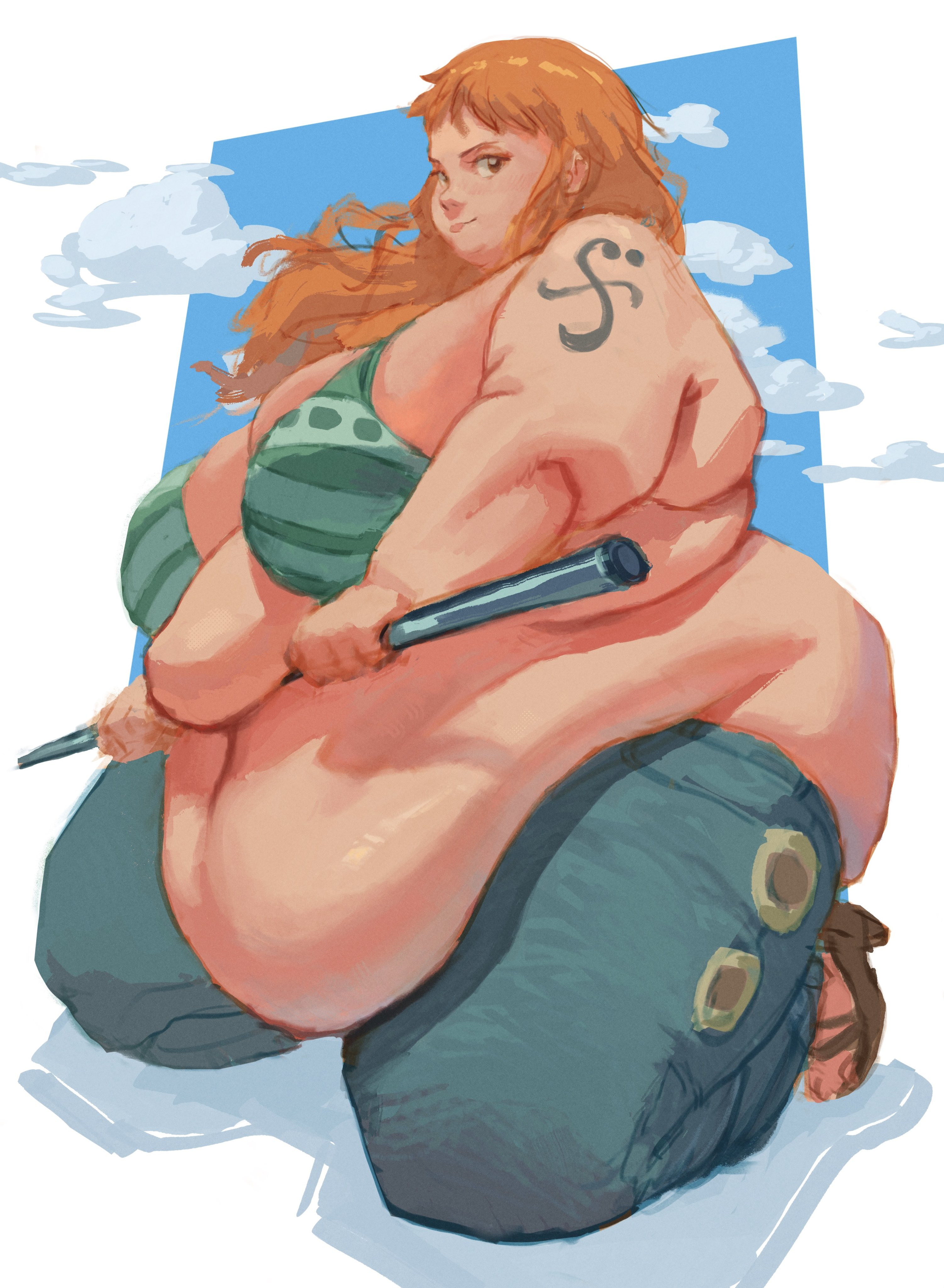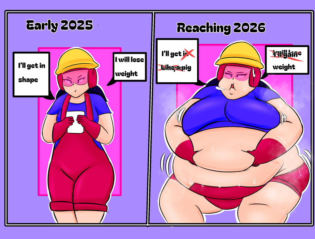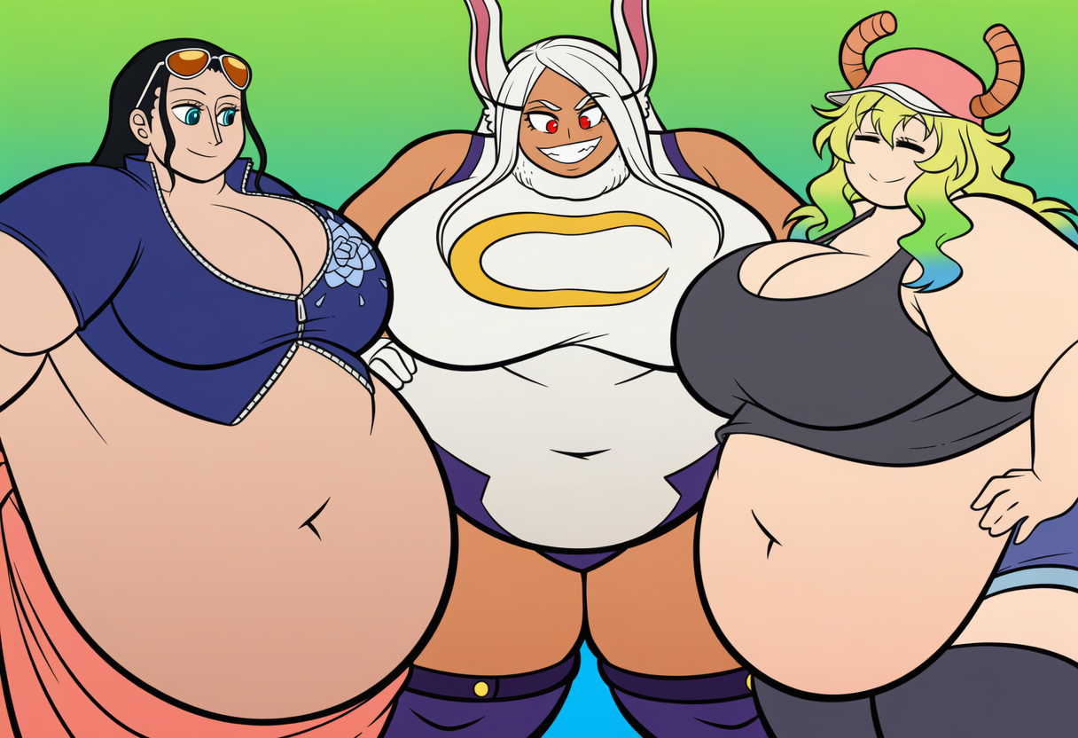 Just post any art by any fat artist of women who are planet sized (or better, BIGGER), or weight gain comics featuring women who reach that size (OR EVEN BIGGER) by the end of the comic
