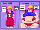 Not sure if I'm being Mandela effected or not, or if I'm having my own evil farm game moment, but for some reason I remember Aaronfly98 having fat art of the Lady Tron diner mascot. Maybe if it was real it was an unofficial edit made by someone not affiliated with Aaron, getting it mixed up with a different artist, or it never was real in the first place. If it wasn't real, it probably was just me fantasizing about Lady Tron fattening up robot women, while she gains weight her self while I was looking at one of Aaron's actual robot art like the oc maid bot or Jenny. Then I got my memories mixed up because I haven't thought about Lady Tron until now, last time was a couple of years ago