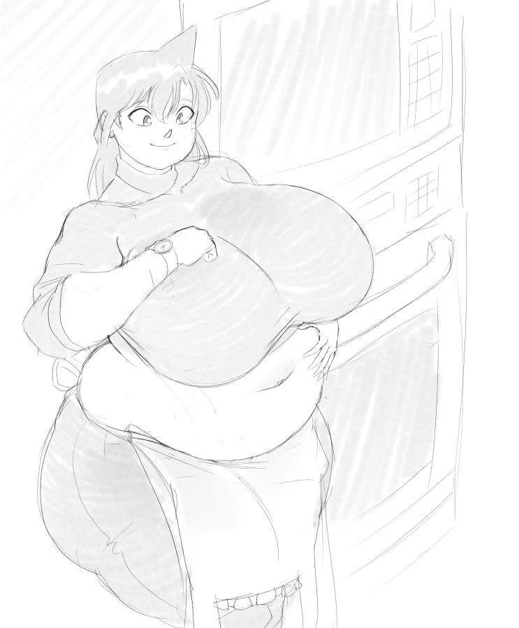 Anybody have any good images of girls trying (and failing) to conceal their gain with shapewear or tight clothes? It's one of my favorite scenarios, but there seems to be little art of it out there.
