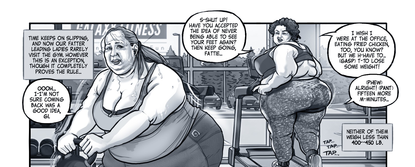 Just post any art by any fat artist of women who are planet sized (or better, BIGGER), or weight gain comics featuring women who reach that size (OR EVEN BIGGER) by the end of the comic