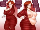 Anybody have any good images of girls trying (and failing) to conceal their gain with shapewear or tight clothes? It's one of my favorite scenarios, but there seems to be little art of it out there.