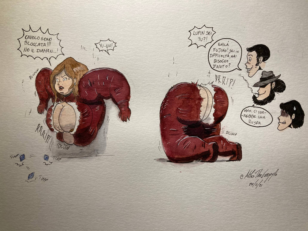 Fujiko: Damnit! I’m stuck! No the diamond! Lupin: Yohoo Fujiko: Are you Lupin? Lupin: Hello Fujiko! You are in trouble! Do you need help? Jigen: She needs a bulldozer🤣