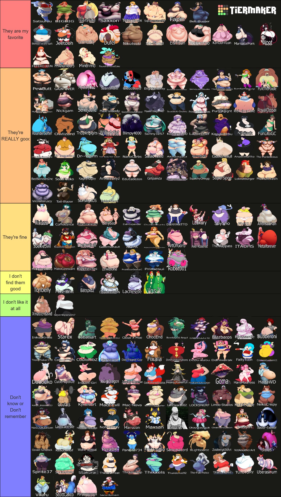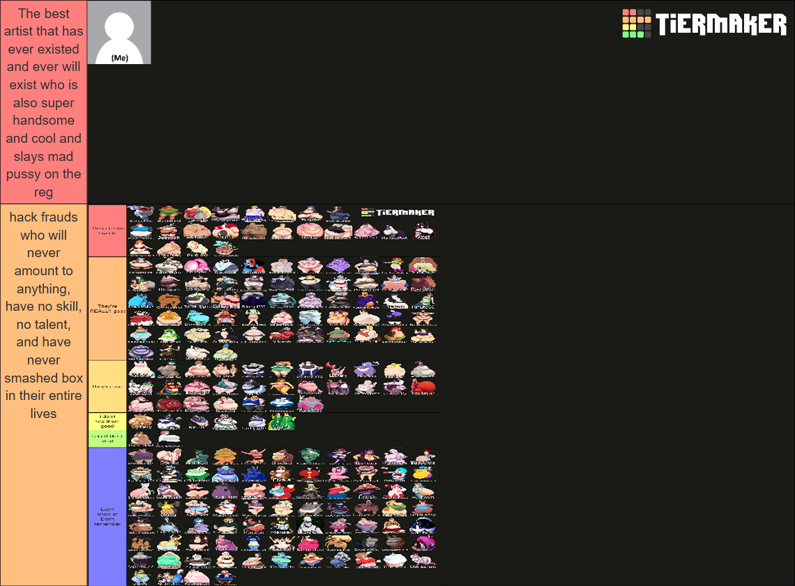 His lack of variation in body types is made up by his skill level. You failed to mention his rendering and constantly having multiple characters physically interact with each other which squarewave doesn't even bother to do outside of the occasional comic. One of his main "gimmicks" is stacking several characters on top of each other in different angles and poses. How this isn't impressive to you at all speaks volumes to me.