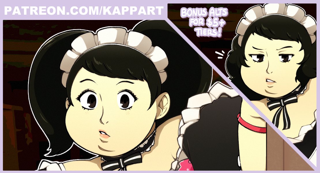 Anyone have two Futaba drawings I've been looking for? One is a tubby Futaba holding an overweight Morgana saying something along the lines of "the diet isn't working" and the other one is Futaba having become ball shaped after overeating curry (idk if that counts as inflation, so if it doesn't belong here, just post it in a thread in Inflation, idk). Here's some Futaba art I can find