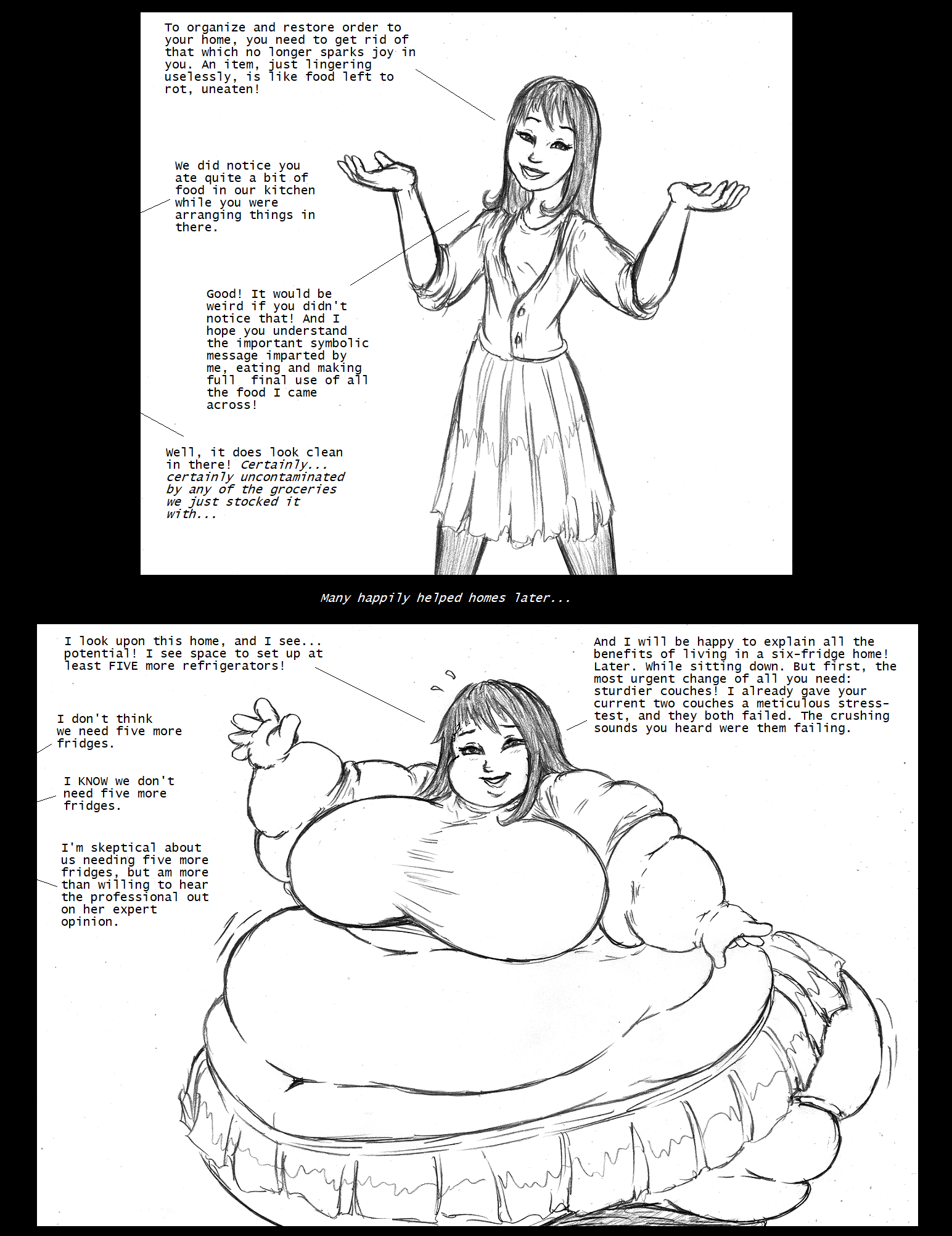 The sequel to the tharja one, was, as far as I'm aware completely unrelated to the ajwolf comms, I'm like 90% sure that the "Queen Tharja" art on the mentioned commissioner's devart page was supposed to be the sequel to the fat giantess tharja art drawn by saxxon, but alas it is lost to time, I can provide proof here in the wayback machine: https://web.archive.org/web/20161025172916/http://gwidol.deviantart.com/gallery/