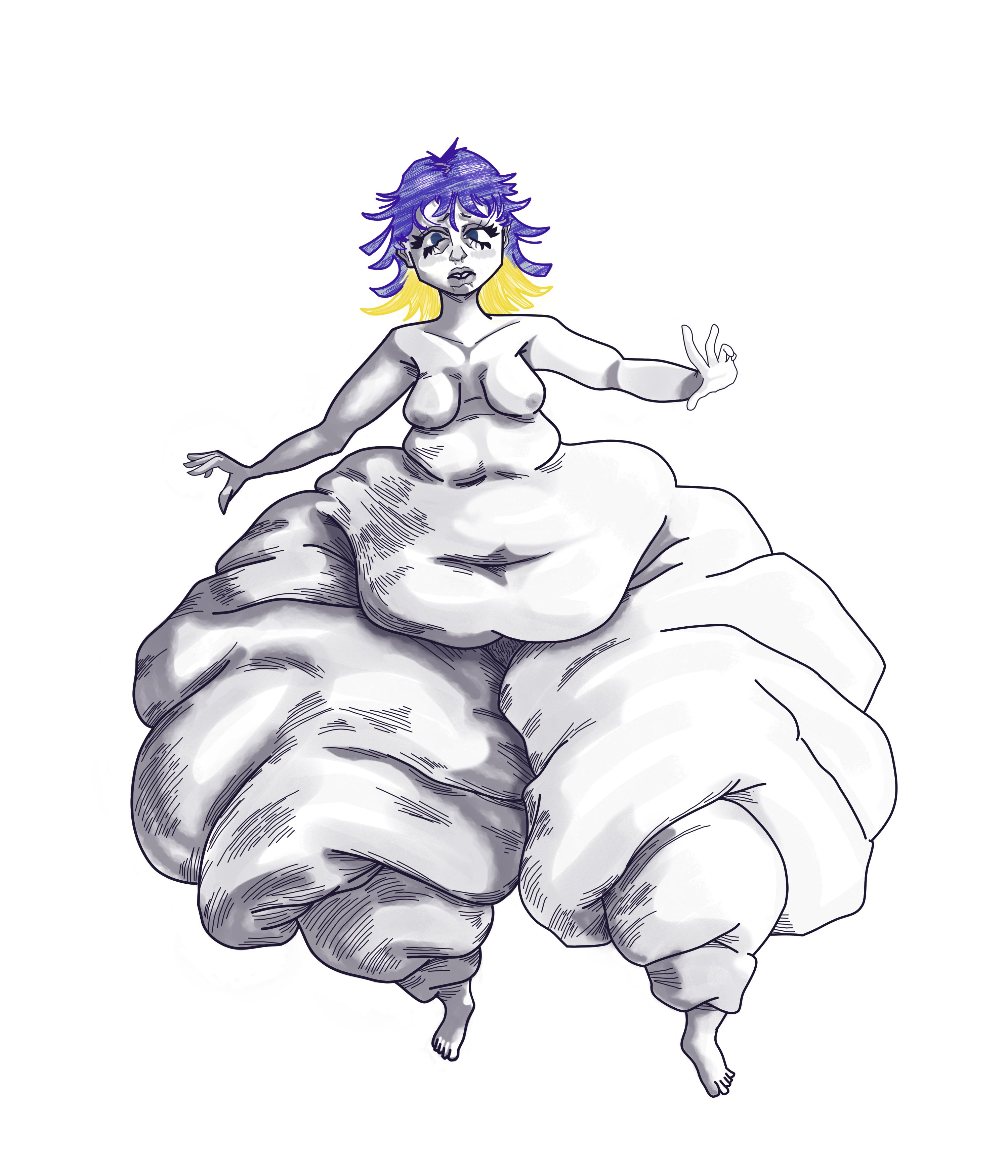 >>287378 That isn't hyper though? You do know that hyper is way more different than that? Hyper looks almost inflated or has a case of "the skeleton doesn't make sense". You can literally see celullite on the second one. Plus all 3 artists do fat art. Plus an extreme pear is everything waist down, but not all of it at once. You can have one with hip shelves yet slight lovehandles (also btw i only post these since not that many people make really large ones, so i'm stuck with ones in my storage in the chubby to fat range unfortunately)