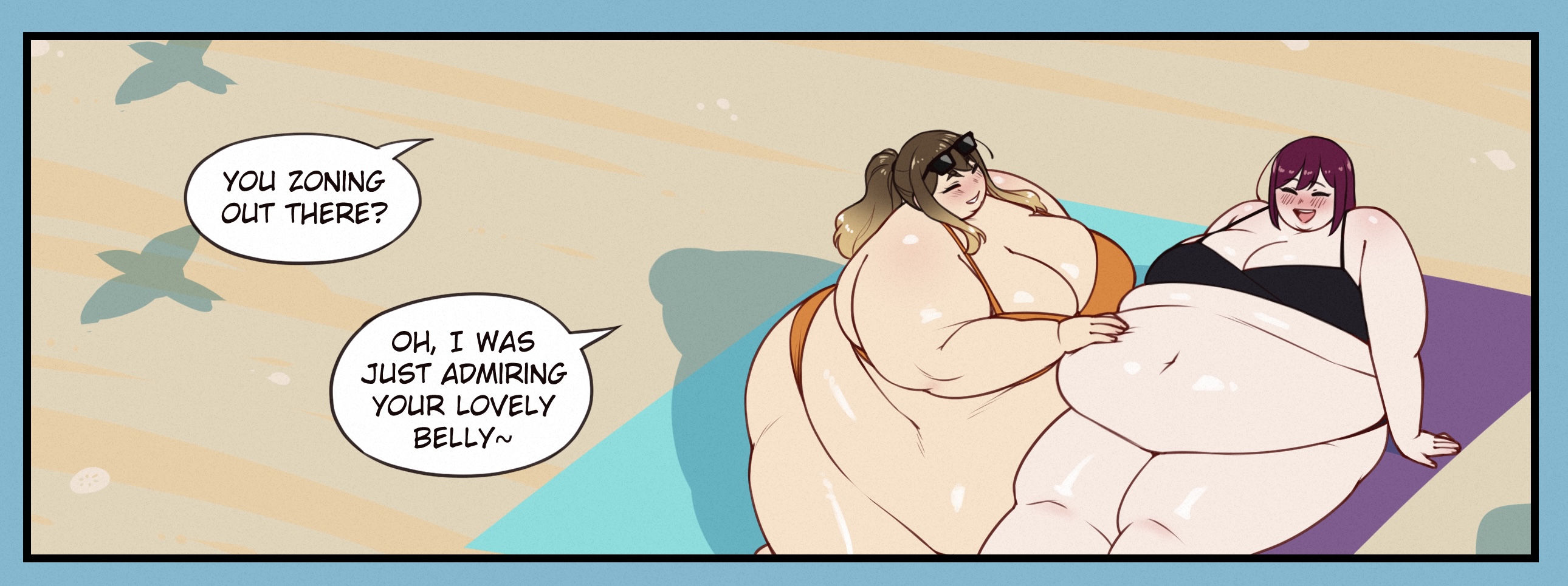 Was going through the beach stuff comic and got to this page. Holy fuck Courtney’s massive, I can never really get a gist at how big some of these girls are but the first panel does an insane job at showing her size (page 10 of Beach Stuff)