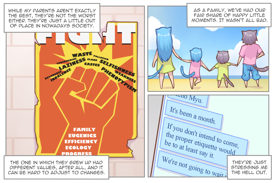 >>302501 I think this comic made me racist towards nekos. So if im not mistaken, the Neko race are the highest in the caste due to them breeding like crazy and extremely autistic. But their autism caused them to get unhealthy and fat which any mentally healthy person would use that moment to reflect on their mistakes and try exercising and eating better. Instead the nekos decided the best course of action was to selectively breed with kumas, a race with an already really low birthrate, and gain their perk of being healthy despite being extremely fat while purging all the other kuma traits due to being the racists shits the nekos are. Now myu is definitely an autist since she came from a long lineage of autist morons.