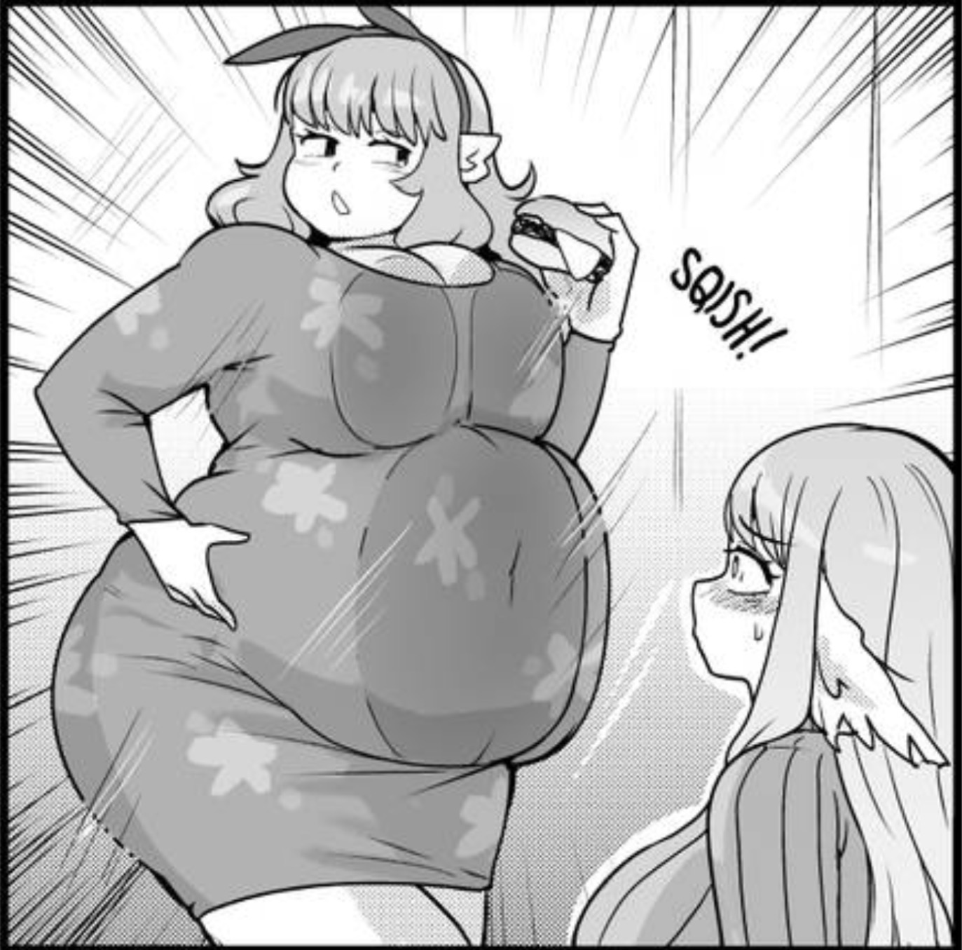 Kip would NEVER, but it'd be hot as FUCK if Tessa was waiting outside after this epic binge of Aika's and was like "Eating contest, rematch. NOW, bitch!" Forcing an already overstuffed Aika to face her in some ridiculous challenge wherein Aika goes farther over her limit than ever, but can't beat the drunken, hungry, un-stuffed Tessa. Score is now tied, 1-1. We are then set up for the rubber match at the end of the series...oh who am I fucking kidding? We're all capable of writing hotter shit at this point of the comic than Kip is, and I've seen no less than twenty STERLING ideas for stuffing, bellies, and weight gain throughout the threads dedicated to this shitshow. I guess we can only entertain ourselves at this point, right?