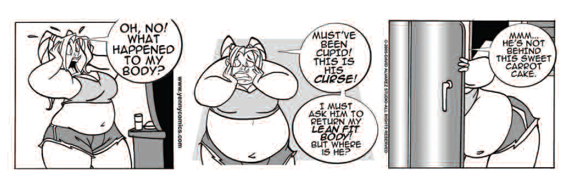 Hey, I am looking for some comics for some time. It was in the Dinner, or any fast food service restaurant and there was a girl and all she ate was increasing the weight of the waitress. Do anyone got a name of this mastrepies?