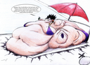 Here's one from an unknown artist of a very obscure Character from the OG Dragon Ball, Colonel Violet. I like how a Dragon ball is stuck in deep on her huge belly button. Surprising how some artists can sometimes draw forgotten DB characters as big fatties. (It might looklittle shitty but it's alright.)