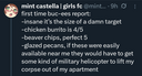>>283660 >Stronny saw hers live on stream, Azura reposted hers, Shibi has responded to hers, so did Mercy, Icey saw it live on stream, Immy is aware as well >only Sinthya has admitted to liking being big I'm gonna need sauce for all of these