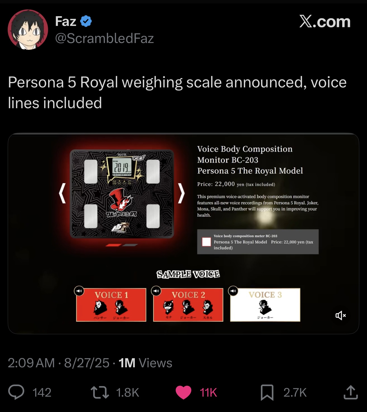 Hello again! Person doing the P5R fat mods playthrough on YouTube! New part will be uploaded tomorrow, here’s the problem