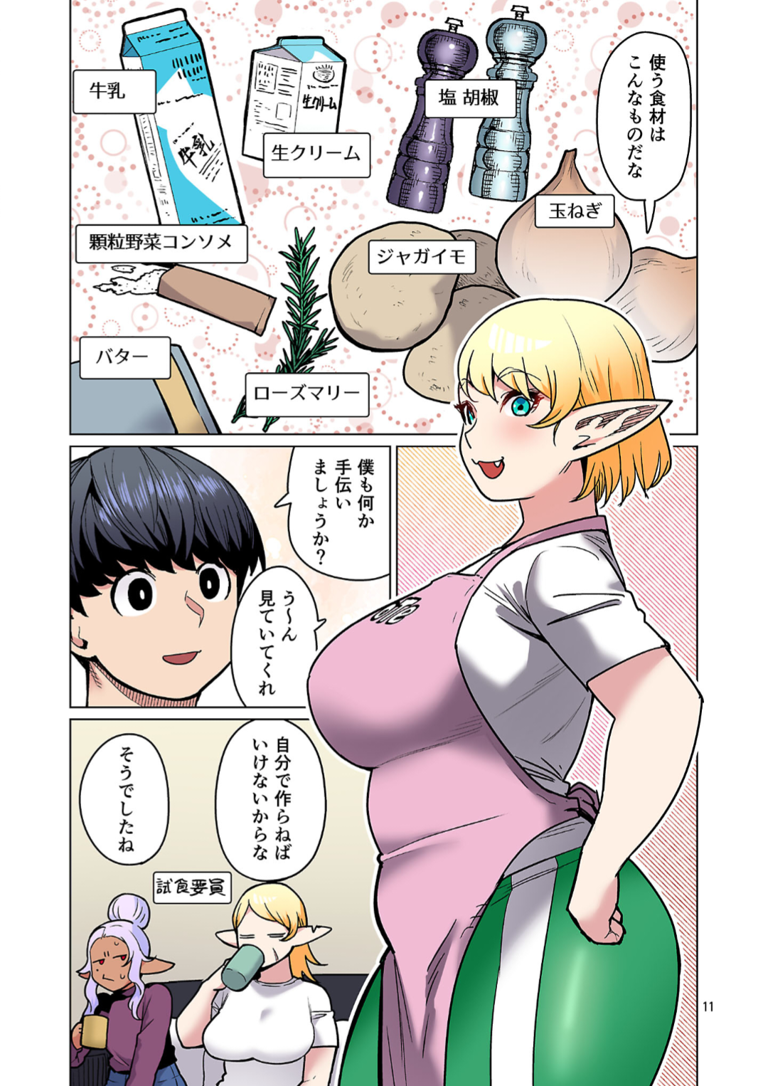 *Wordplay/portmanteau: エルフルコース is エルフ "elf" + フルコース "full course (meal)." I implore the gentle reader to come up with a better equivalent, as I don't have it in me right now.