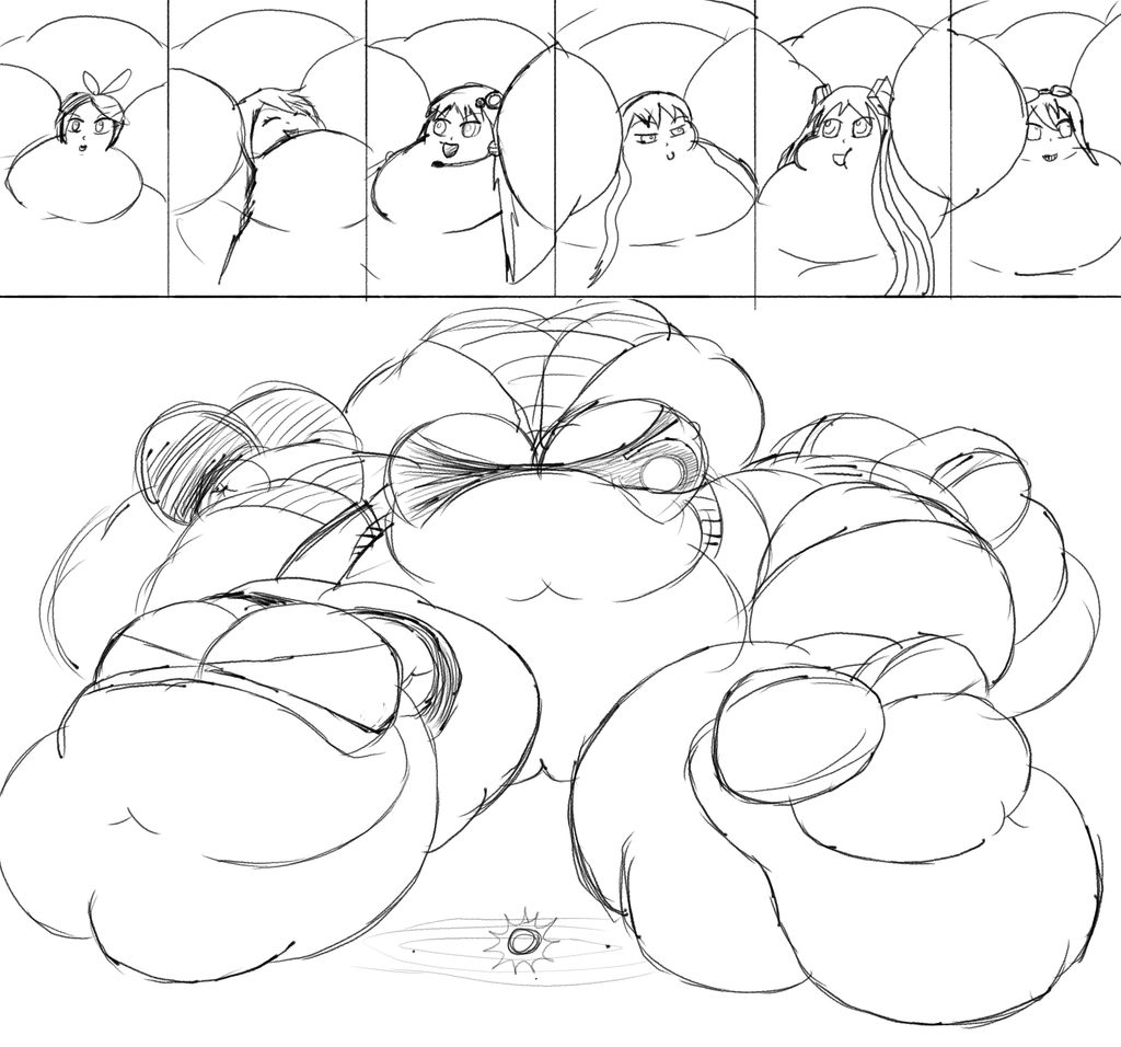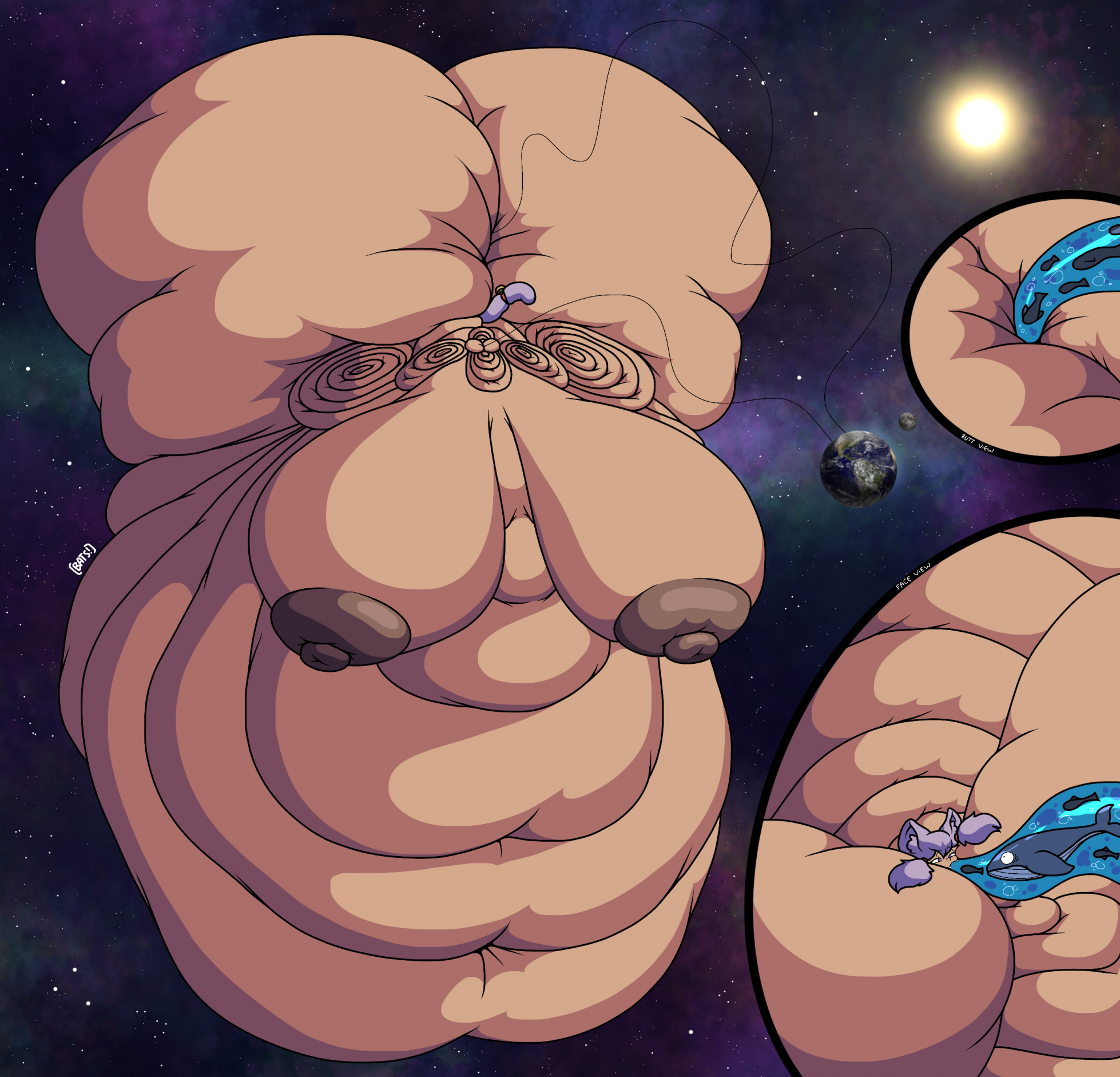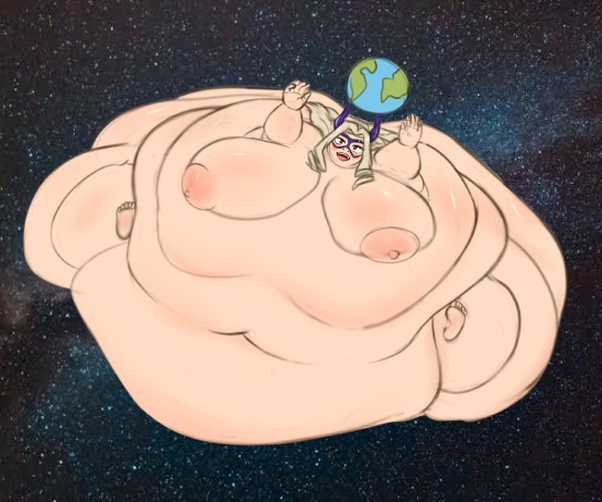Just post any art by any fat artist of women who are planet sized (or better, BIGGER), or weight gain comics featuring women who reach that size (OR EVEN BIGGER) by the end of the comic