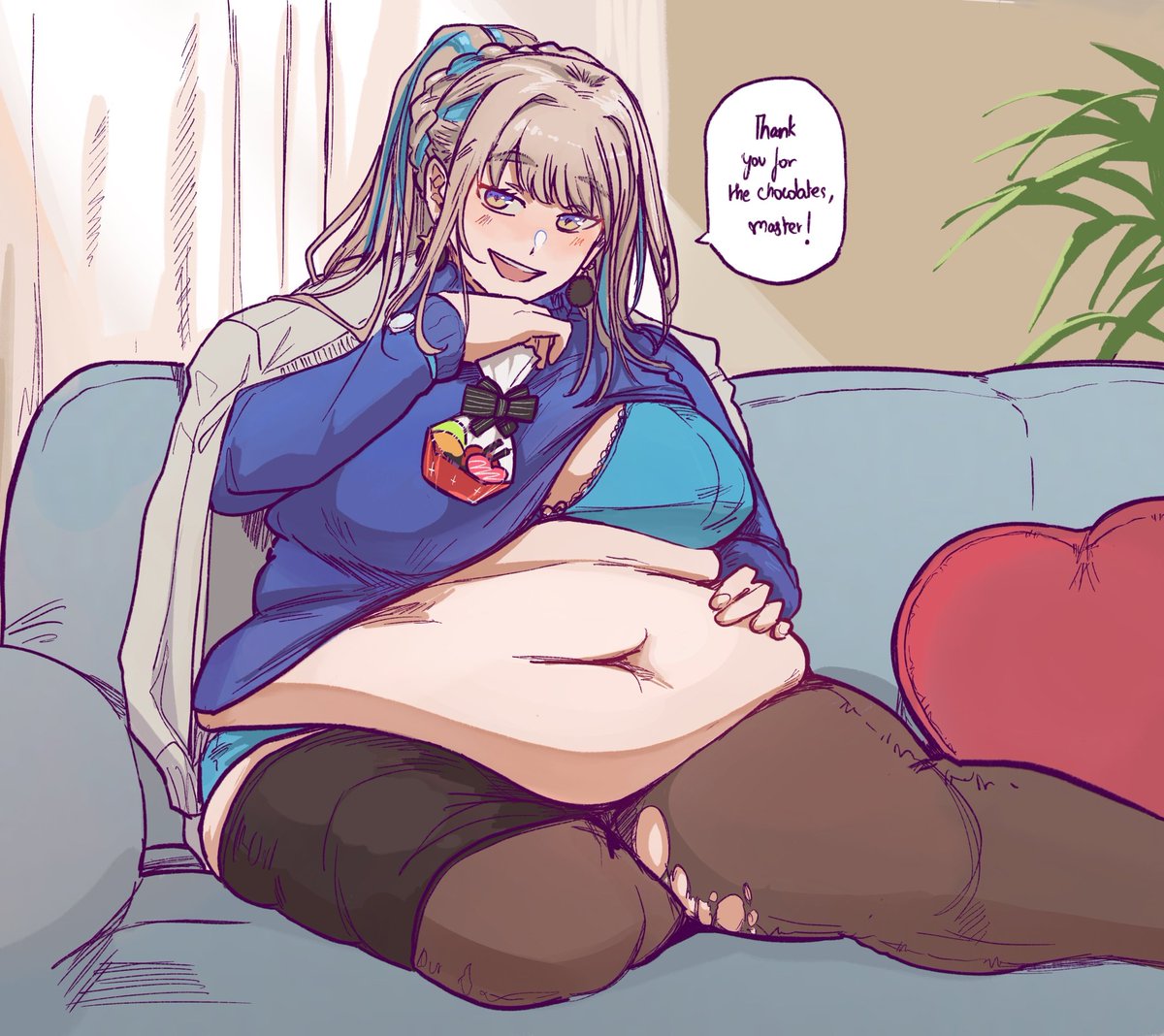 I don’t know why but I’m always surprised how little fat art there is of Boudica. I get she isnt as popular now since shes a terrible unit but thats never stopped people before Cute oneesan vibes, constant kitchen staff presence and an outfit made to be blimped out of should have been more than enough to fuel Boudica blubber for years