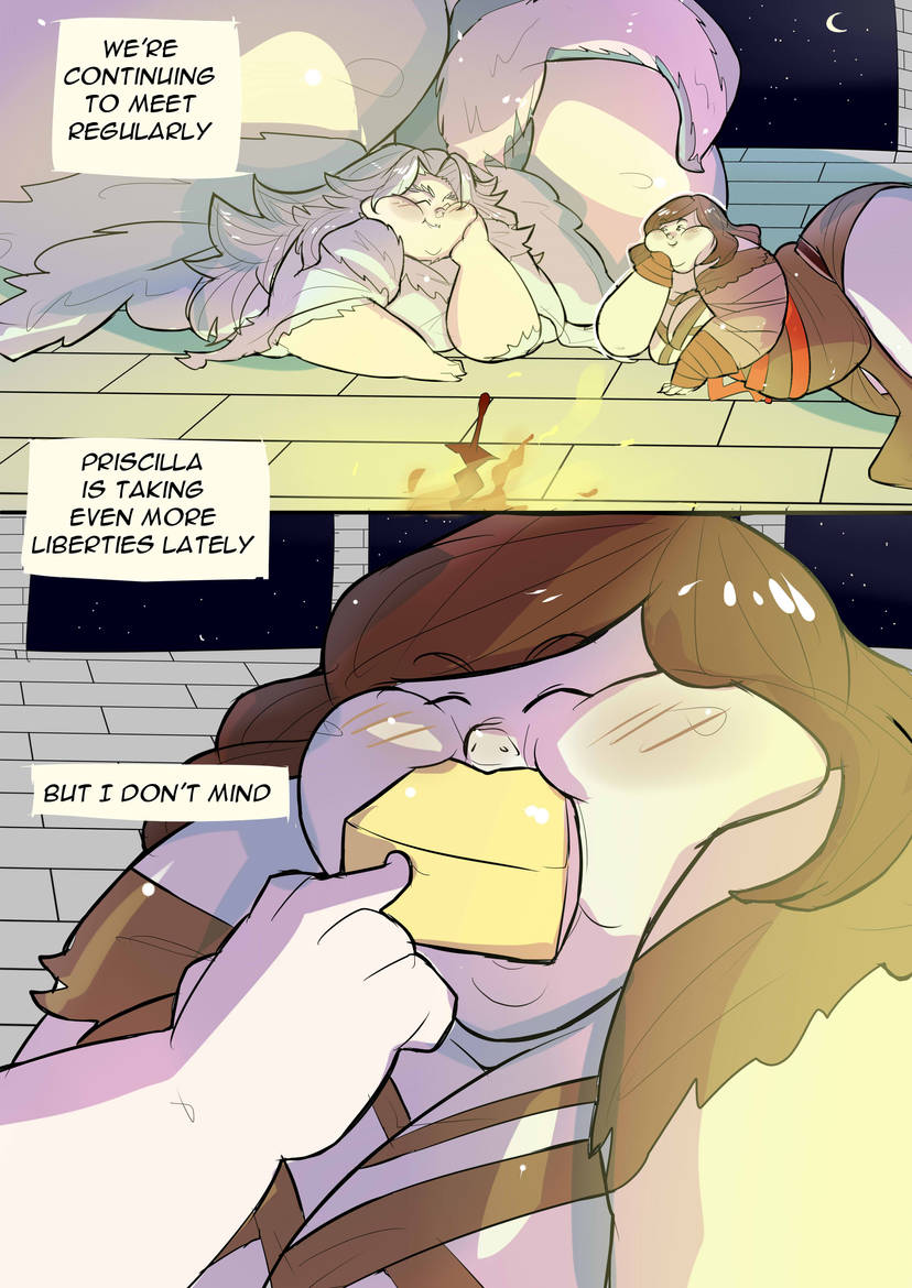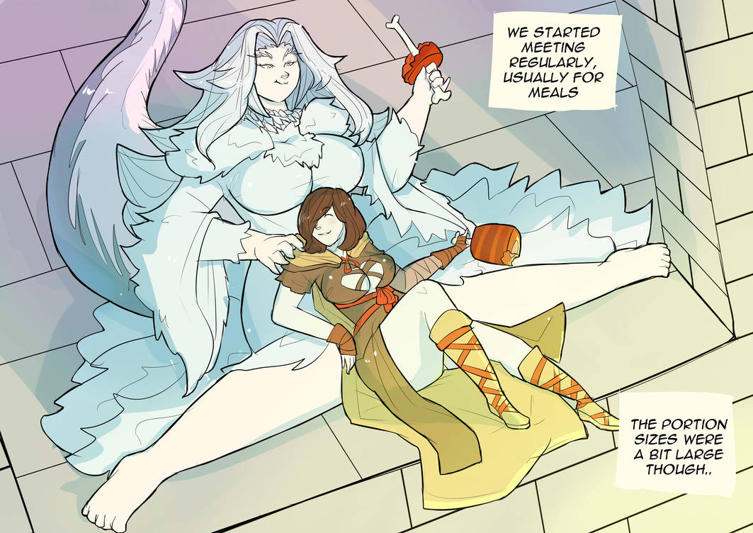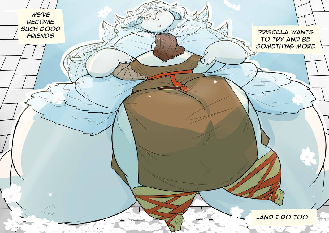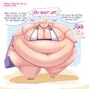 >>279283 >>279284 Never really been much of a fan of Jay-Tee's work, but this is an incredibly well done comic. I like how it could be interpreted in multiple ways; either the weight gain signifies time moving forward or the two of them initially saw each other just as they remembered them, only for the reality of their bodies slowly revealing themselves once they catch up. Either way, the idea of using weight gain as a narrative allegory is such a novel concept we don't see often in WG comics.