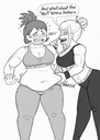 >>287260 Hey really cool! I love the extra super-hero-y situation and style, like the exxagerated sound effect. The tub of lard hero looks very sexy in green that's for sure. Only suggestion I'd say is you could make her huffing an easier colour to read. It's a damn lucky villain that gets to be flattened by that fat frog. May I humbly suggest you try Momo struggling with some weight gain? Thank you.