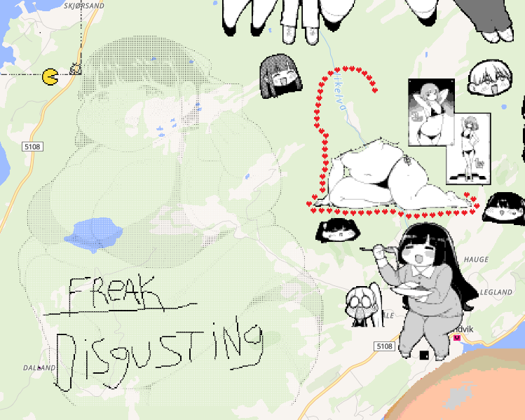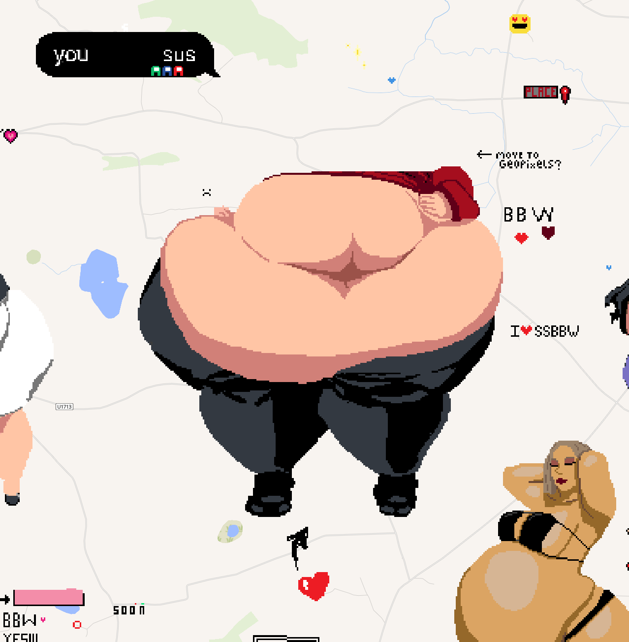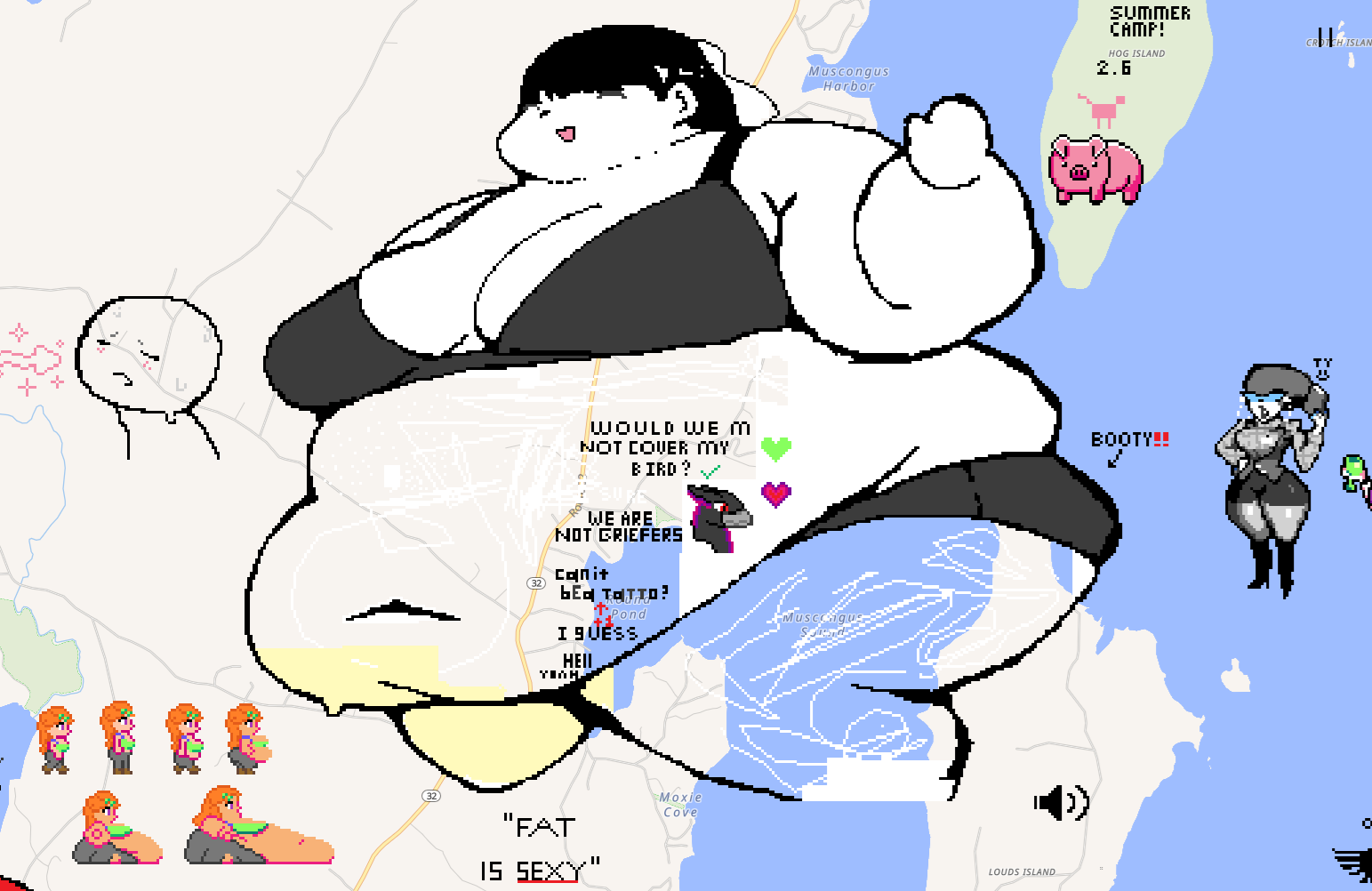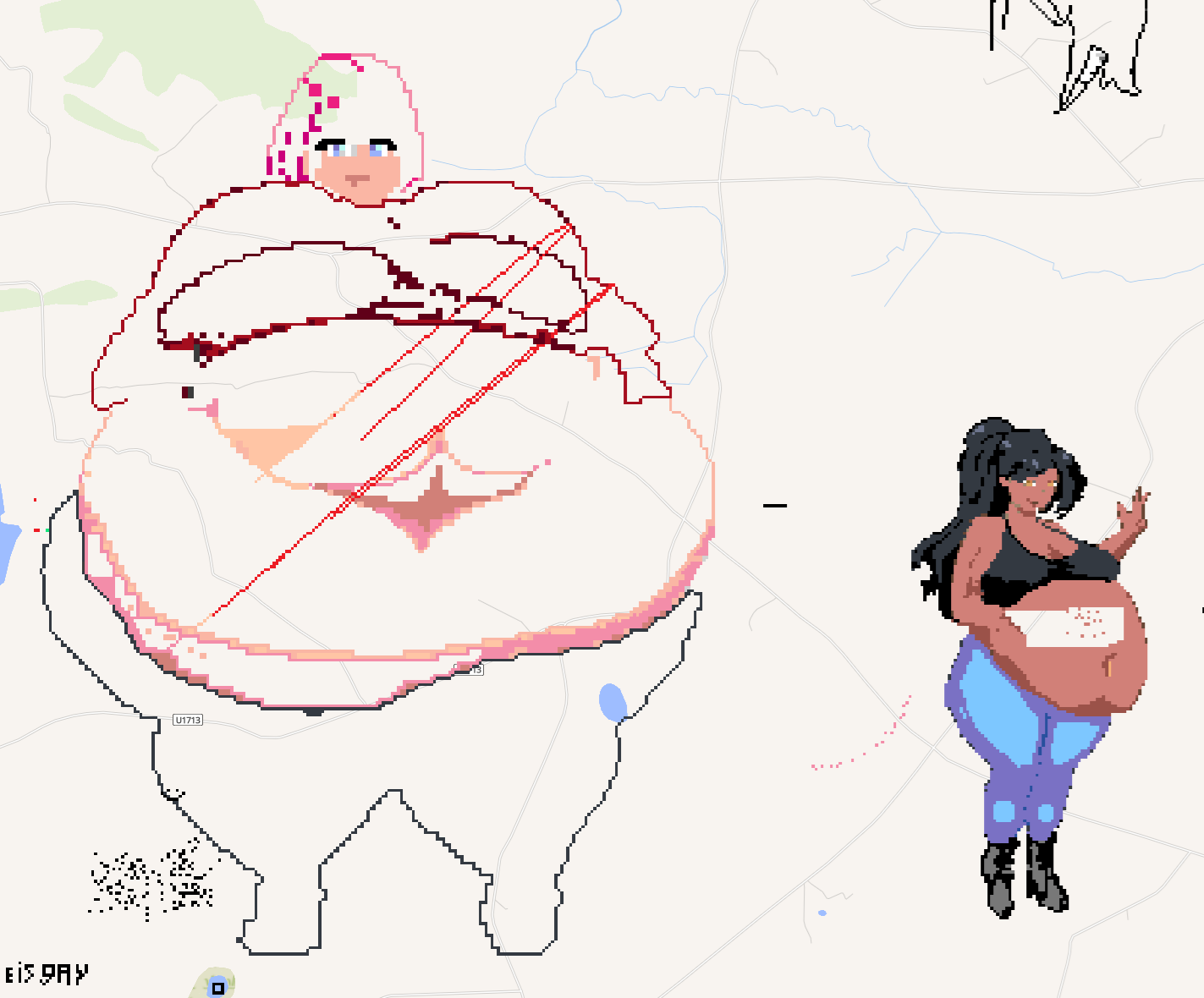 I started drawing freehand this woman with gigantic ass at fatties bay. It was almost empty there when i started drawing, and now i guess botting is occuring, drawing something large, it is slowly starting to look like something, but beforehand the size and place wasnt marked. Now its starting to draw over my artwork. I just started coloring it and random black pixels and lines are appeqring and ruining my work. Not really sure what to do at this point :/ lat=43.84802954152241 lng=-69.25526400322266