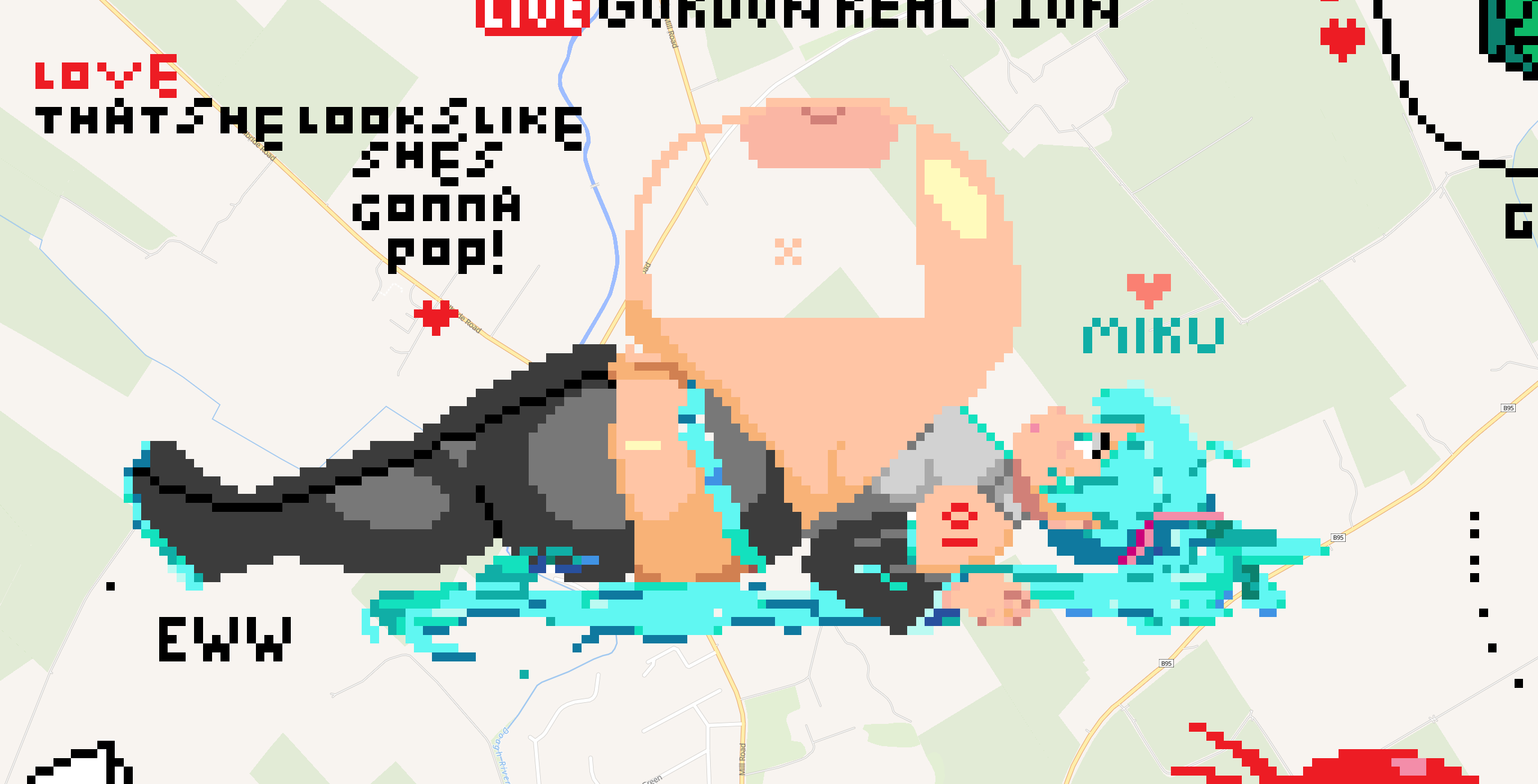 >>281125 https://wplace.live/?lat=51.40573065505306&lng=-115.42842806572264&zoom=11.993097980698723 What a coincidence my Miku art is being griefed too and I also got suspended so I can't fix mine either. Odd that both of these happened on the same day. (In case anyone wants to help I'm loosely following the provided template at these Blue Marble coordinates: 367 681 340 940) On a side note and speaking of griefs, here is an archive site that might prove helpful in finding any fatties or otherwise that got covered or erased: https://wplace.samuelscheit.com/