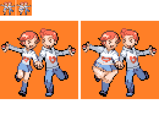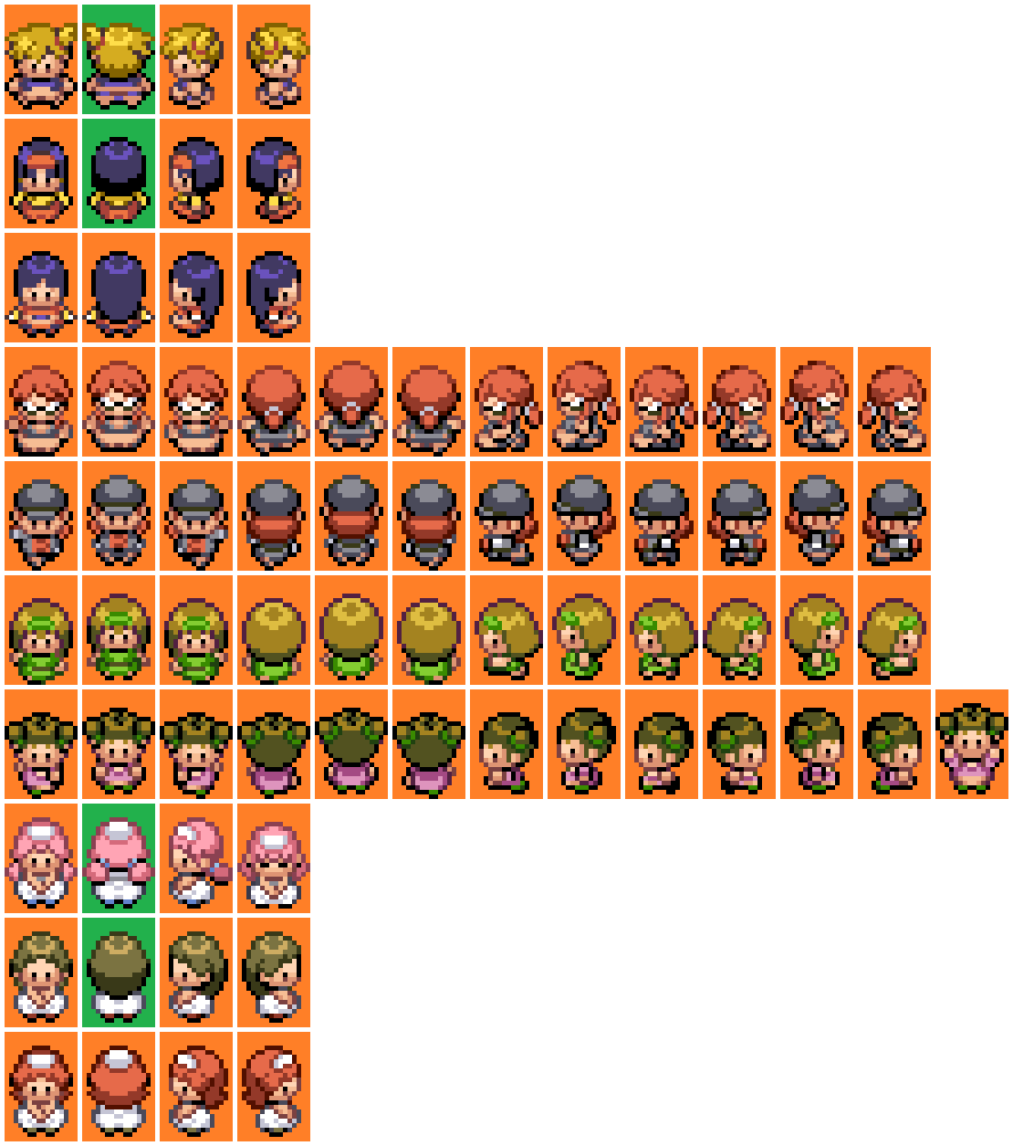 >>288730 When I got to making the overworld sprites, doing such small edits on tiny sprites felt really boring and same-y so I stopped for a while. It's been long enough now, so I'm finishing up what was started, this is what was done before. Also since it's been a year since I started making the trainer edits, any that might need touch ups I'd be glad to back and make changes